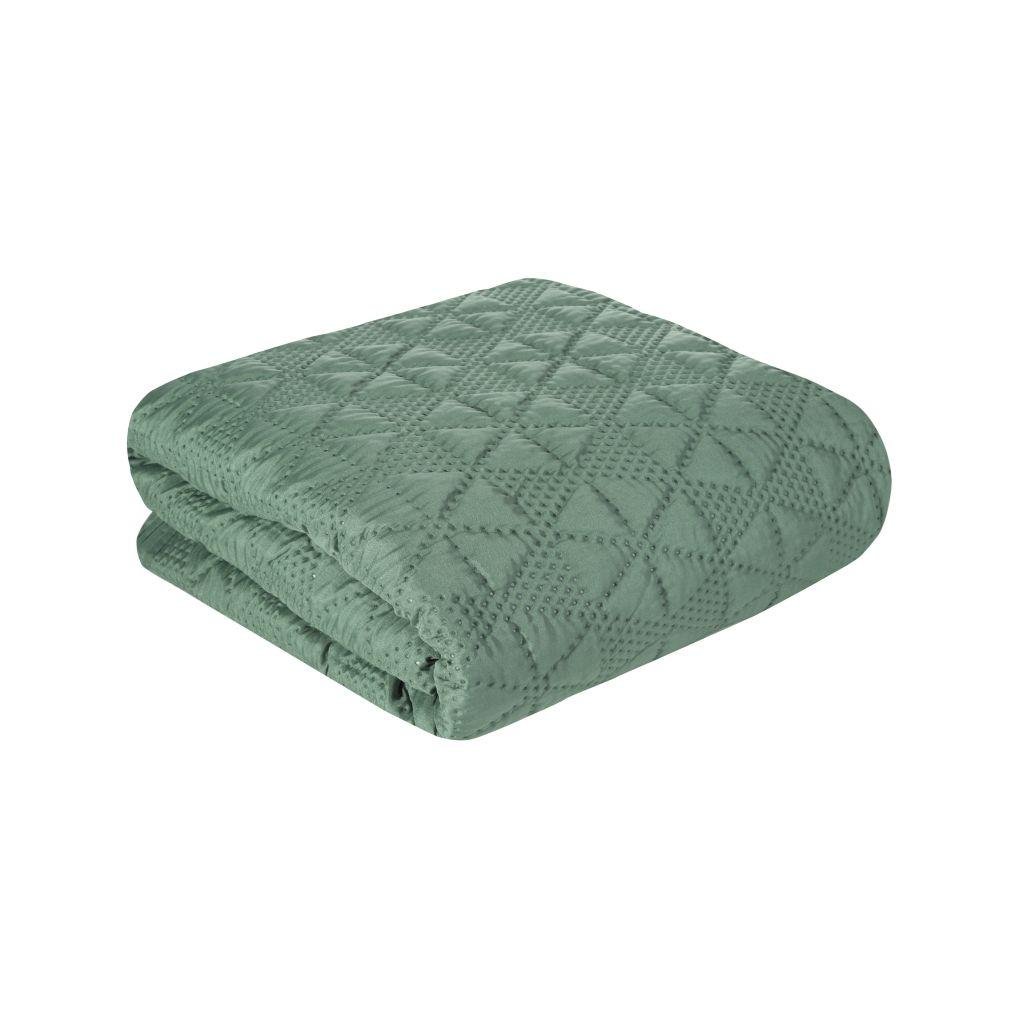 Štýlový prešívaný prehoz na posteľ MABEL zelenej farby. Rozmer 220 x 240 cm