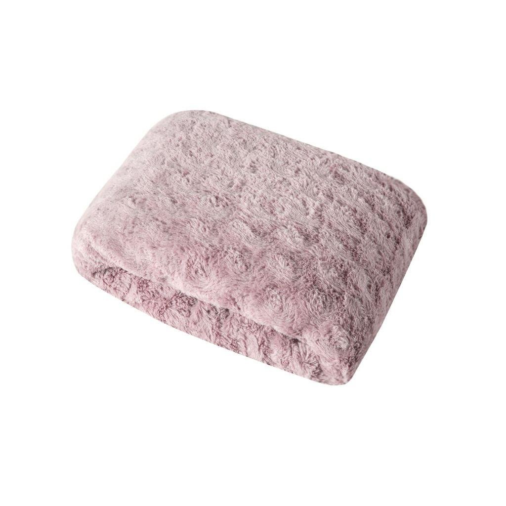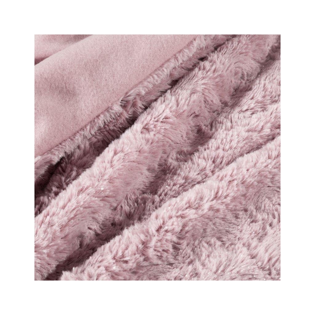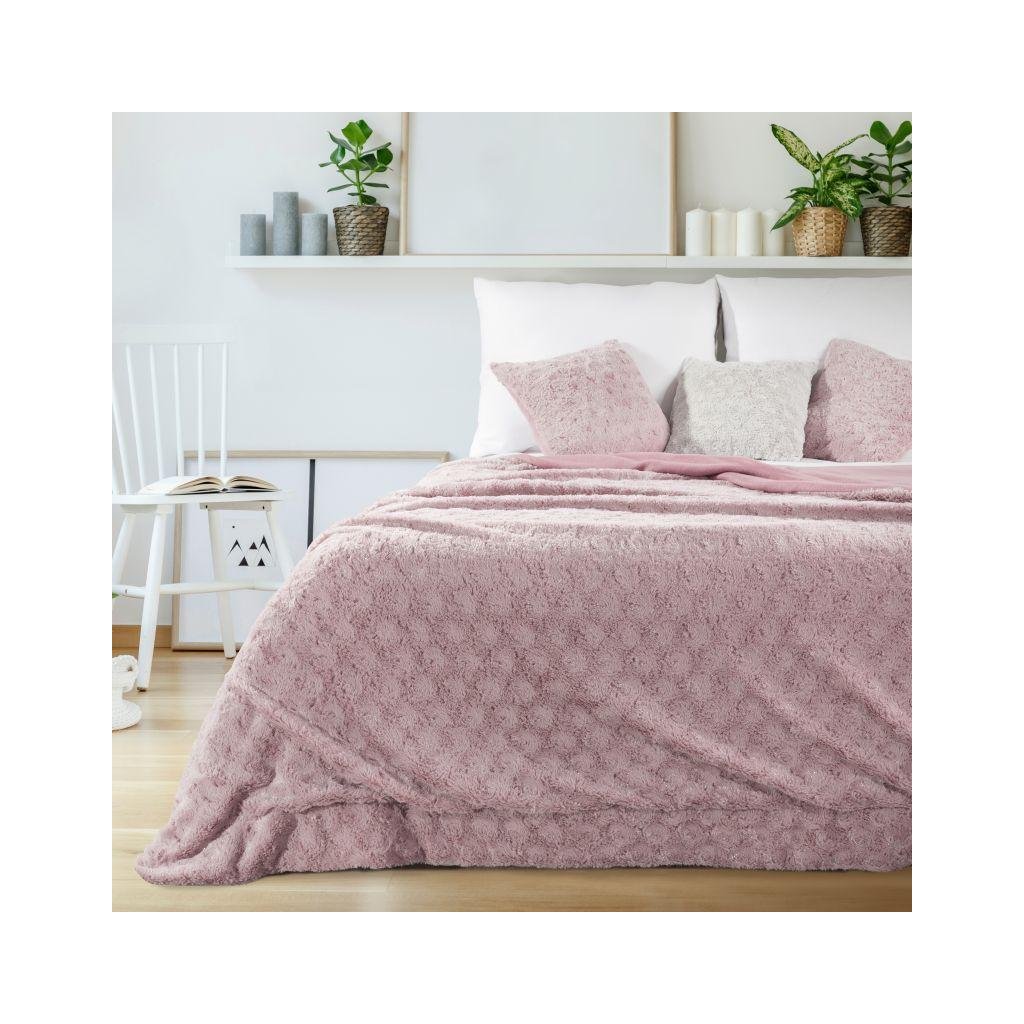 Jednofarebný pudrový prehoz na posteľ ROSALIA vyrobený z mäkkej tkaniny s kožušinovou štruktúrou usporiadanou do ružových kvetov. Výborne poslúži aj ako prikrývka. 220x240 cm.