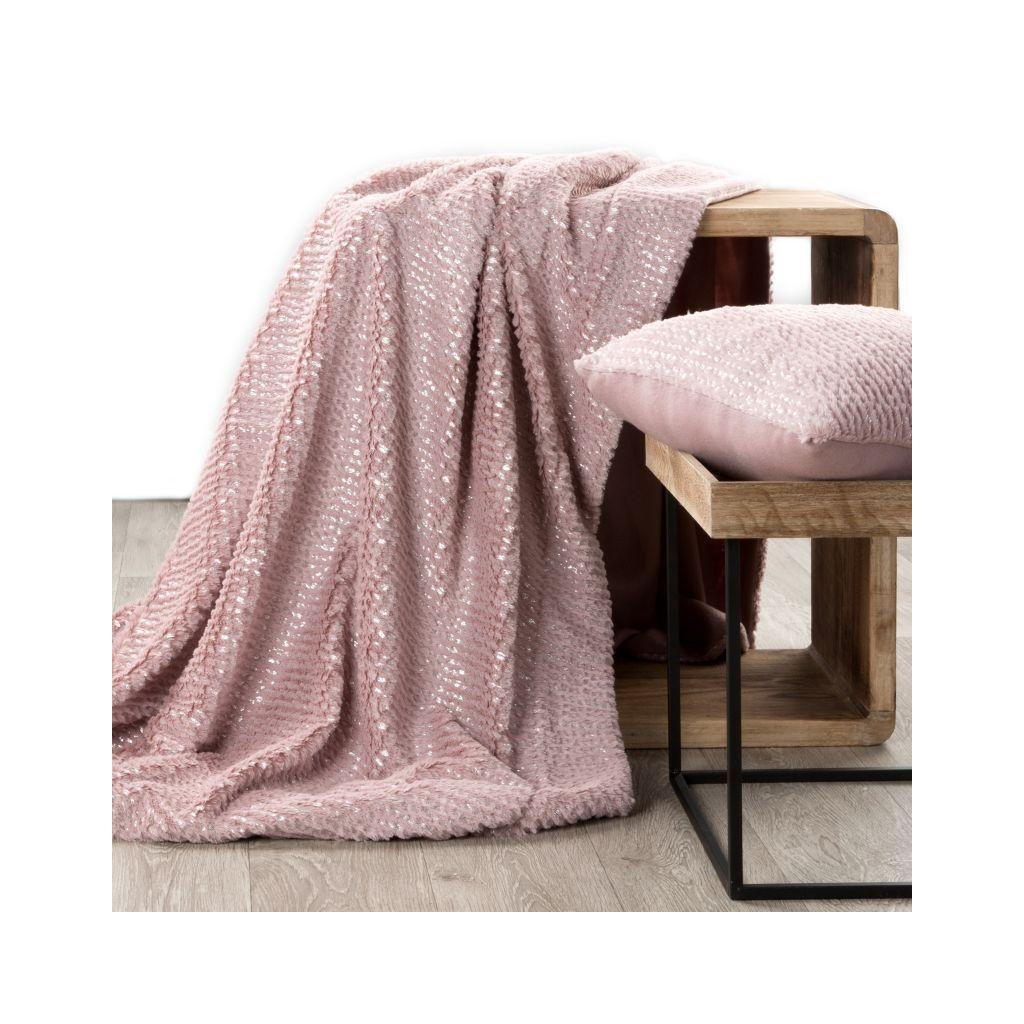 Pudrová deka HAVANA s kožušinovou textúrou a striebornou potlačou 70x160 cm
