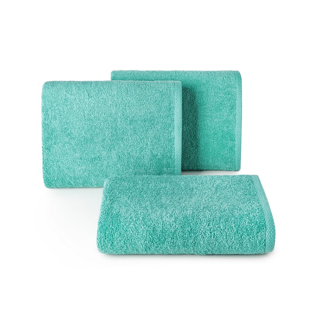 Jednokolorowy, gładki ręcznik kąpielowy z miękkiej tkaniny bawełnianej o splocie frotte. Lekki, trwały i bardzo chłonny. Kolory odporne na częste pranie. szerokość: 70 cm, długość: 140 cm, kolor: ciemnomiętowy, Gramatura: 400 GSM, Skład: 100% bawełna