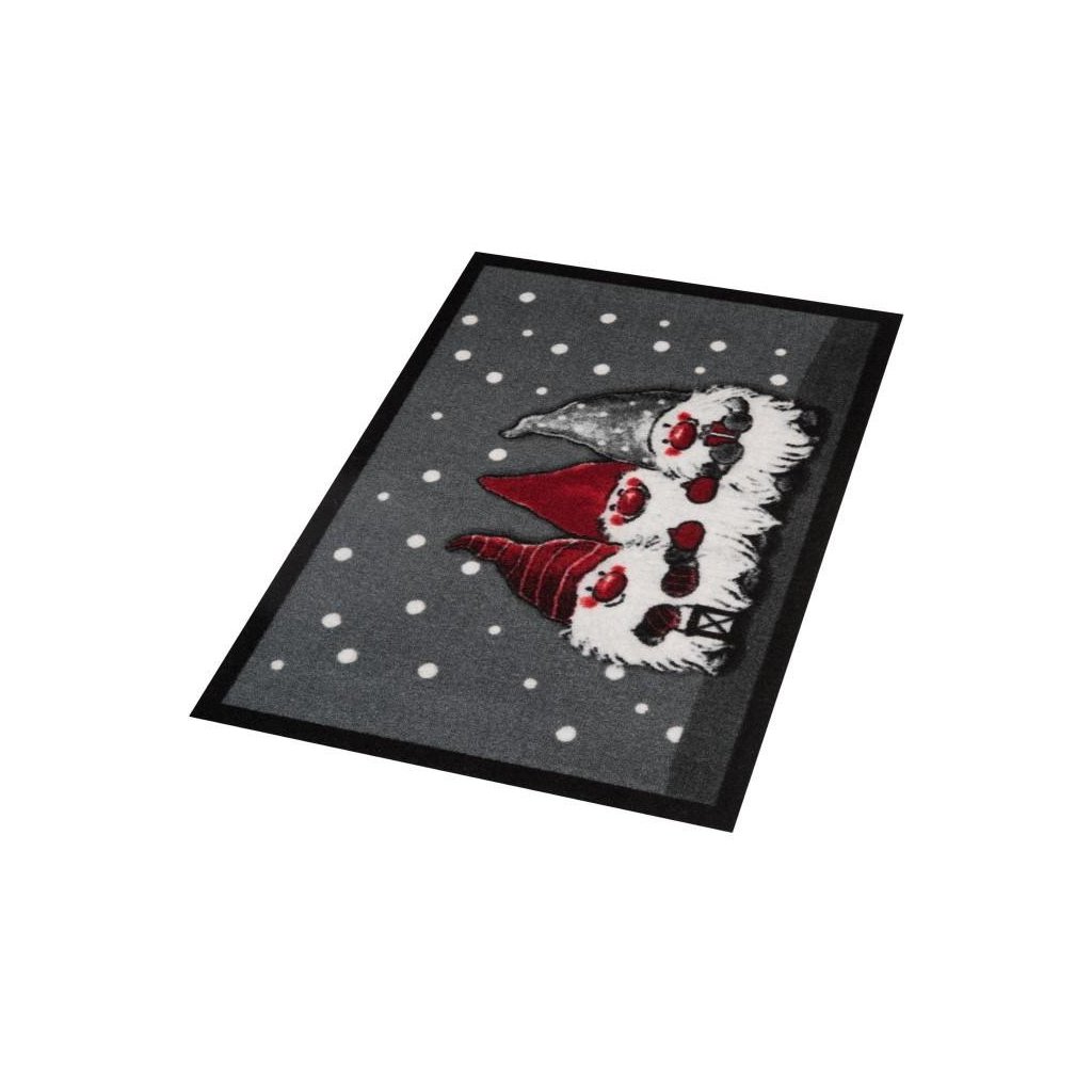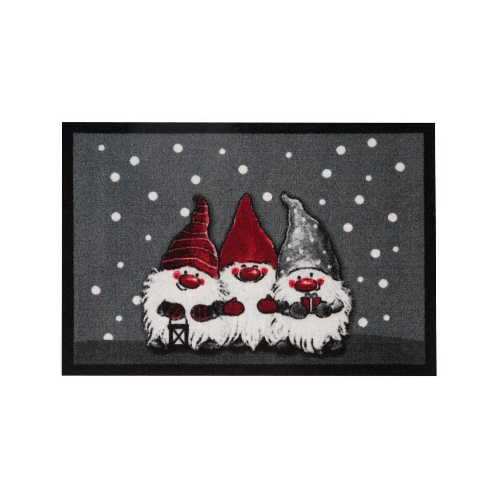 Krásna vianočné rohožka s motívom tri trpaslíkov na sivom pozadí. Rohožka je vyrobená zo 100% polyamidu, vďaka čomu je veľmi odolná. Privítajte návštevu štýlovo s rohožkou Printy 103037.
