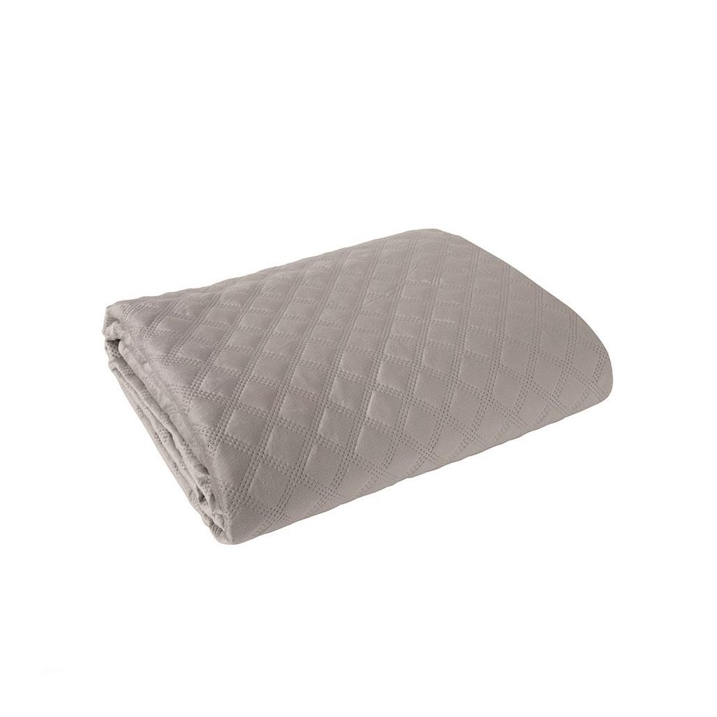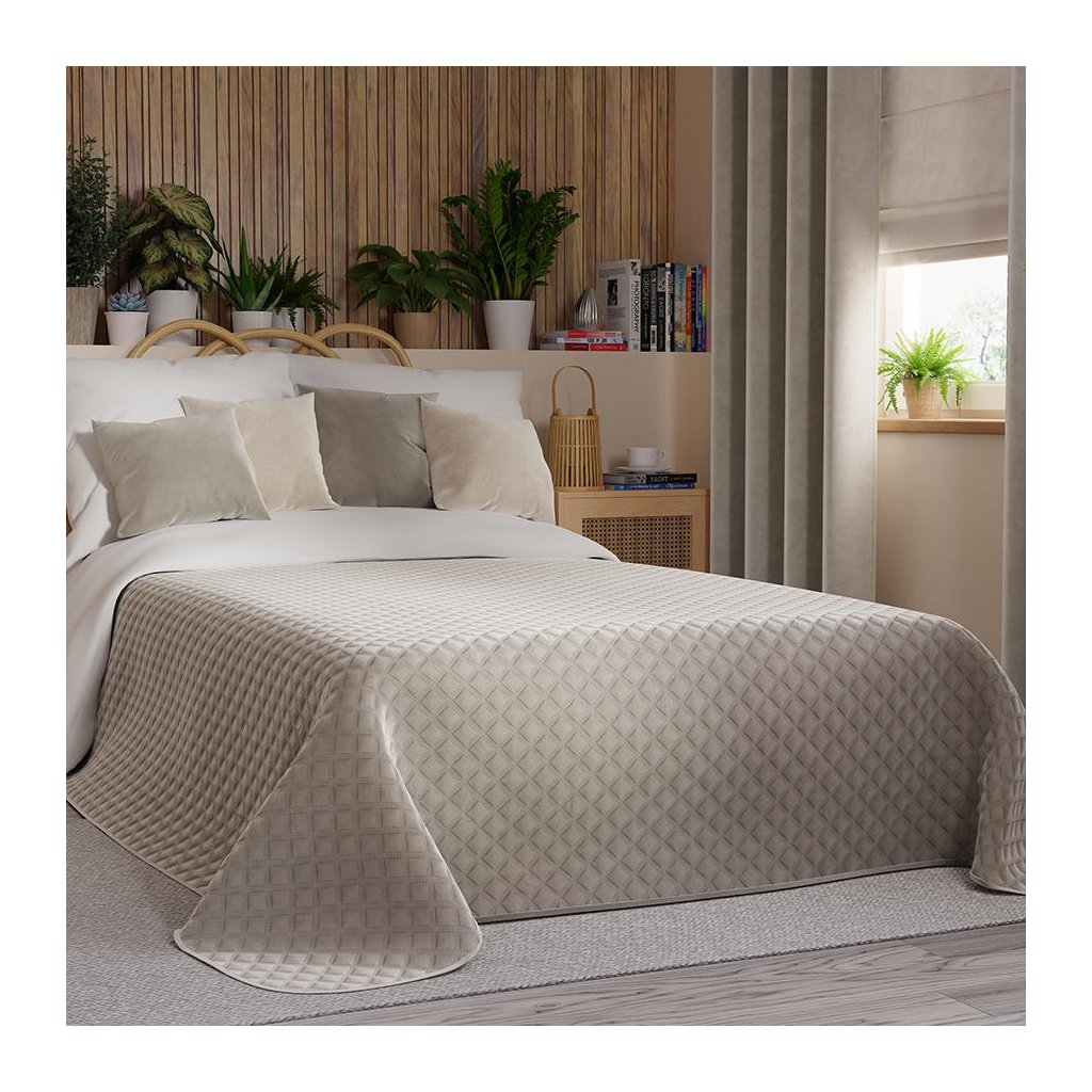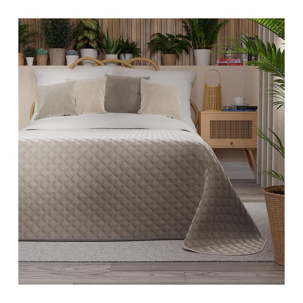 Šedobéžový zamatový prehoz na posteľ VELVI 170x210 cm