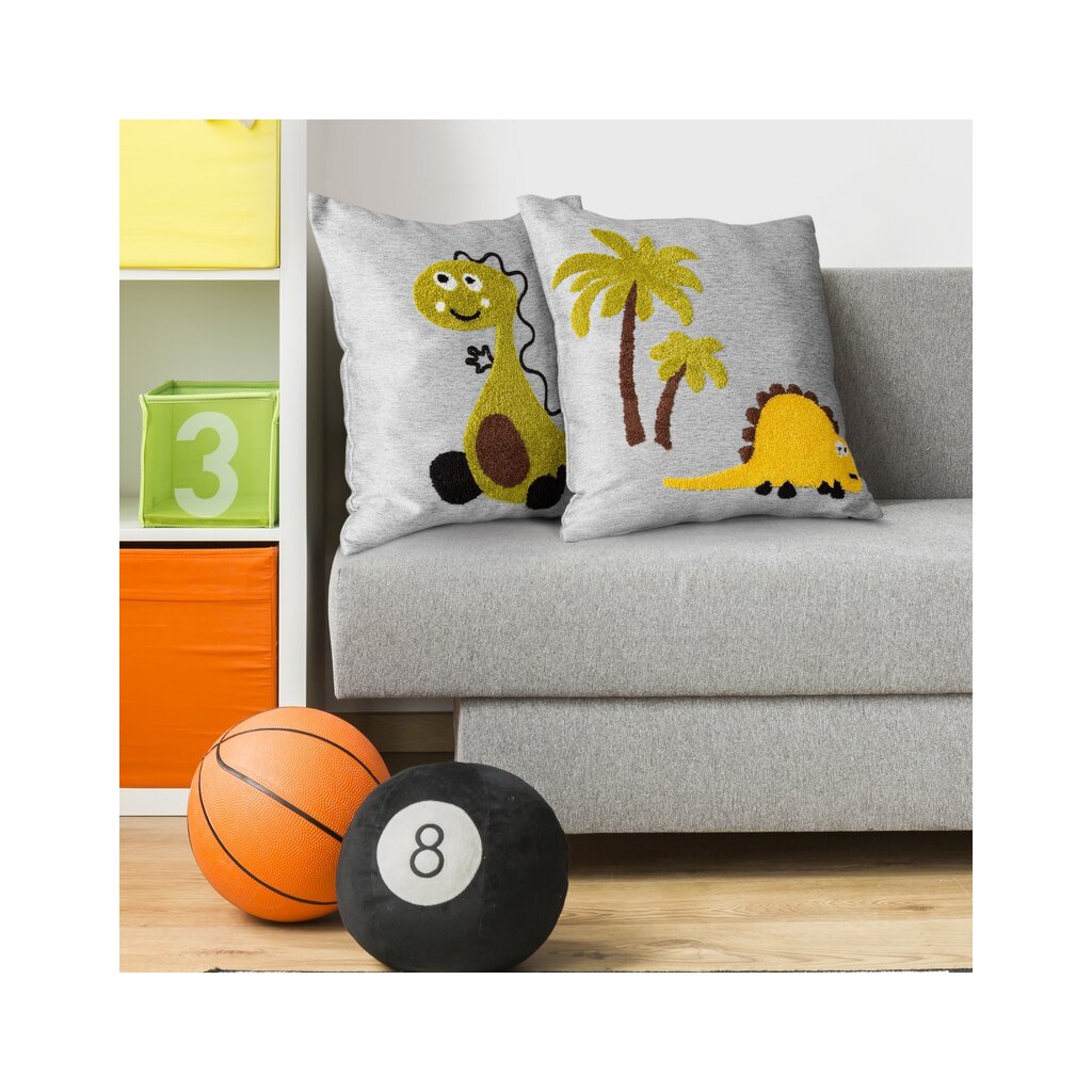 Sivá detská obliečka na vankúš motív 01 DINO 45x45 cm
