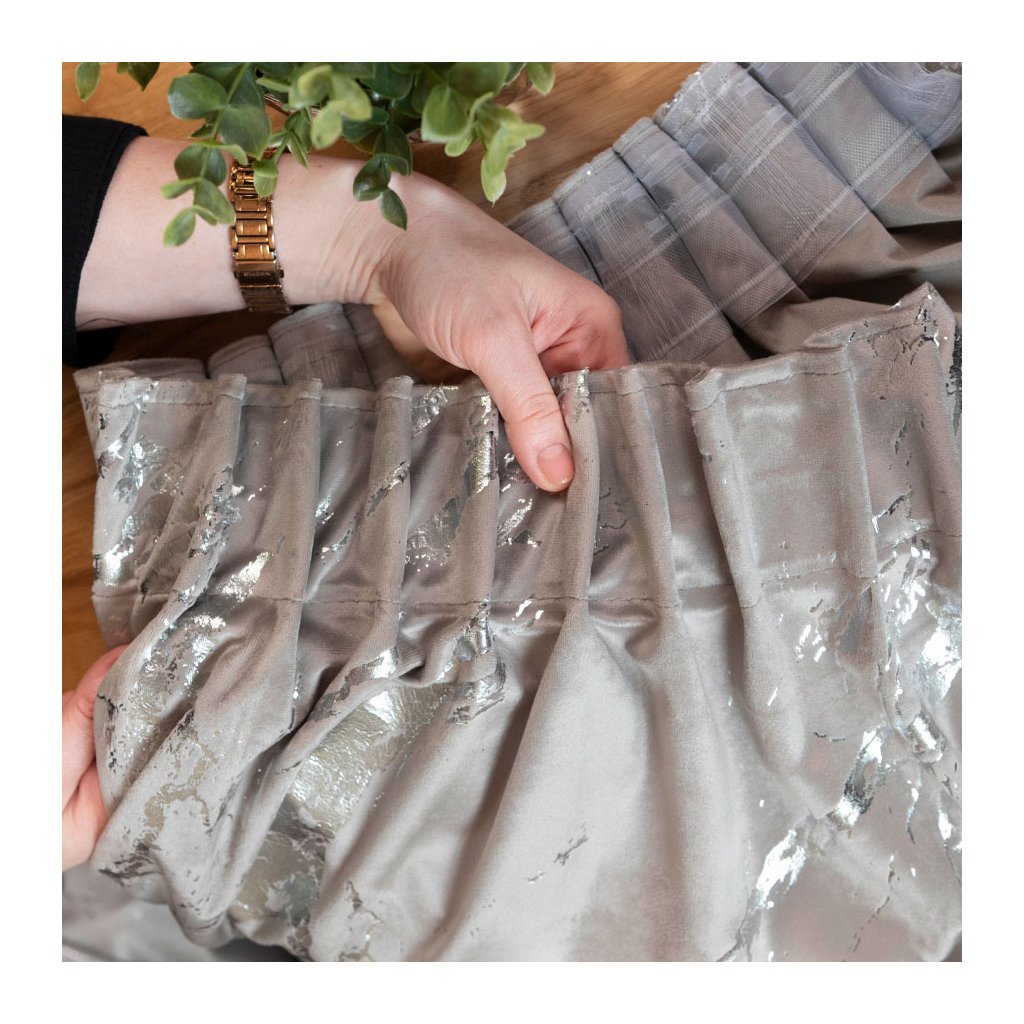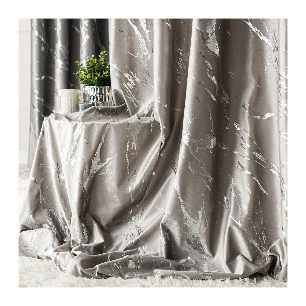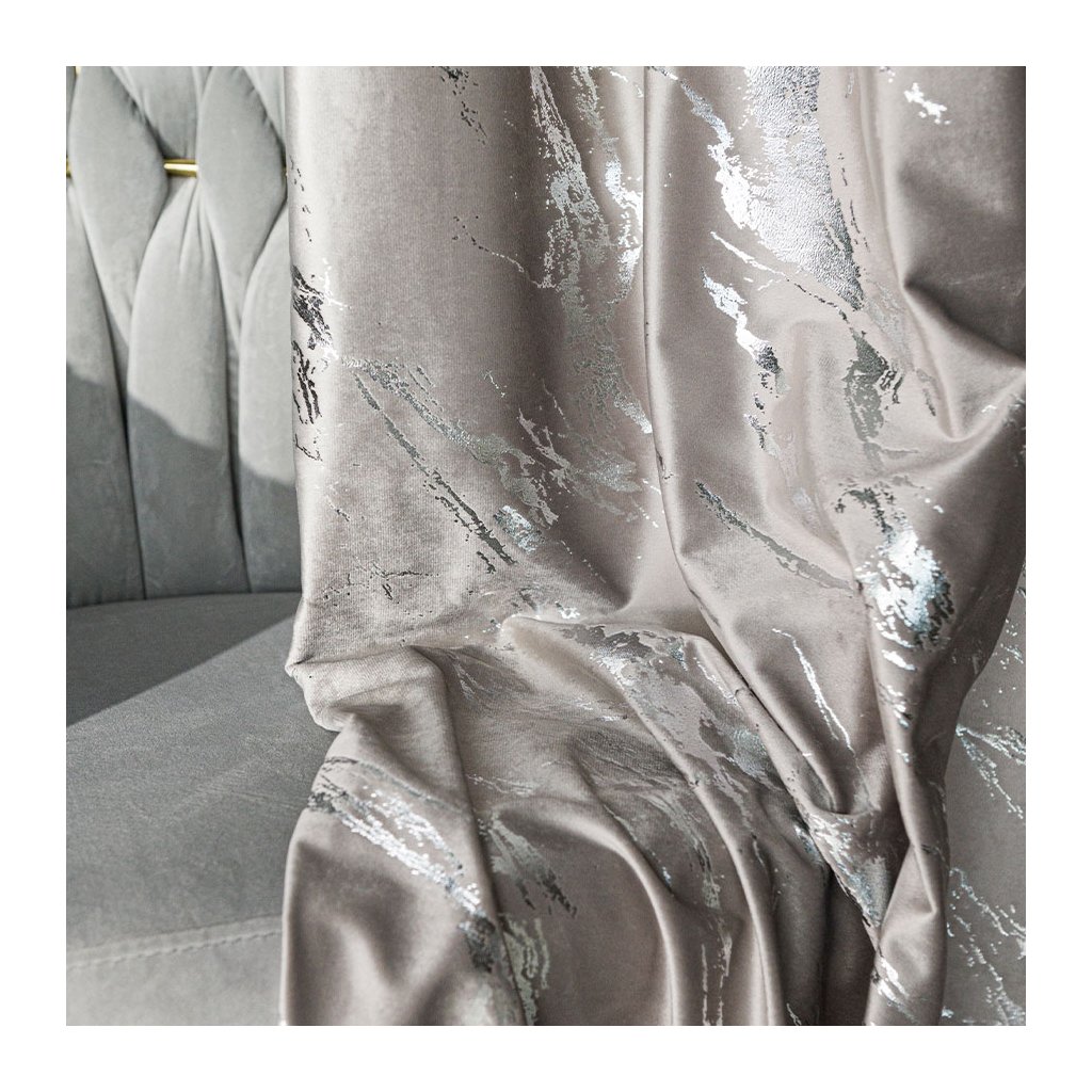 Sivobéžový zamatový záves so striebornou potlačou na páske MARMA 140x250 cm