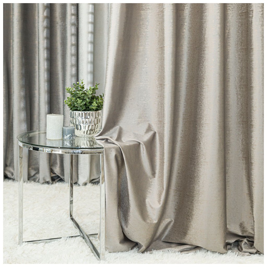Sivobéžový zamatový záves so zlatou potlačou na krúžkoch ELEONORA 140x250 cm