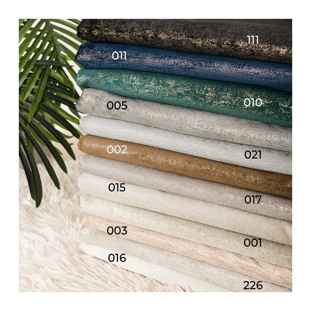 Decentný vzor pôsobí ako štruktúrovaný metalický závoj: zblízka zaujme subtílnym zrkadlením, z diaľky vytvára čistý, jednotný efekt. Kolekcia ELEONORA prináša „hotelový“ efekt – zamatový dotyk, čisté línie a jemnú zlatú iskru pre útulný výsledok v každej miestnosti.