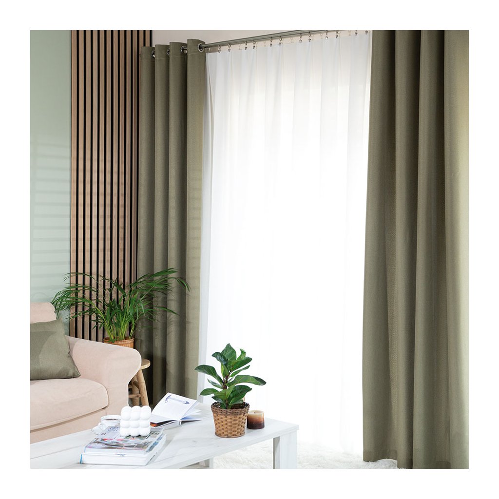 Polozatemňovacie prevedenie prirodzene tlmí denné svetlo a zvyšuje súkromie bez úplného zatemnenia. Materiál 100% polyester s príjemnou gramážou cca 170 g/m² drží pravidelné záhyby a pôsobí upravene – ideálny na vytvorenie útulnej, vyváženej atmosféry.