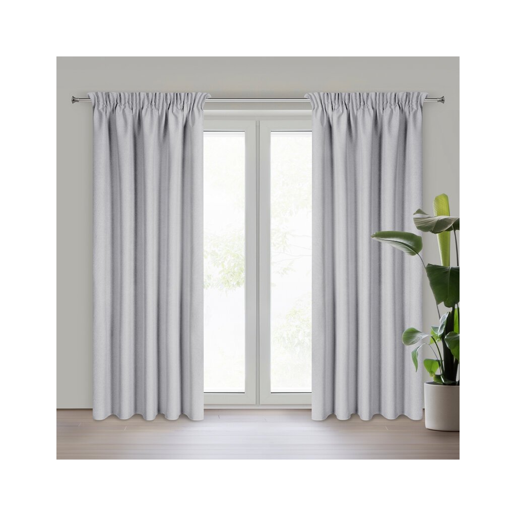 Sivý 100% zatemňujúci záves typu blackout na páske SUZAN 135x270 cm