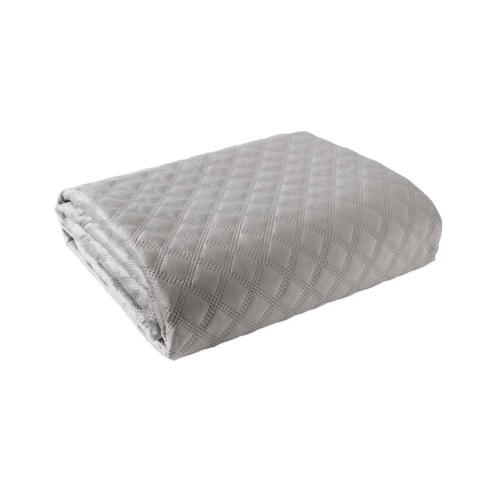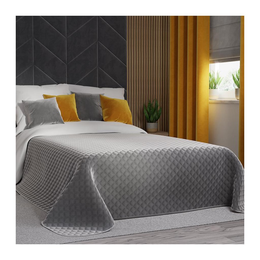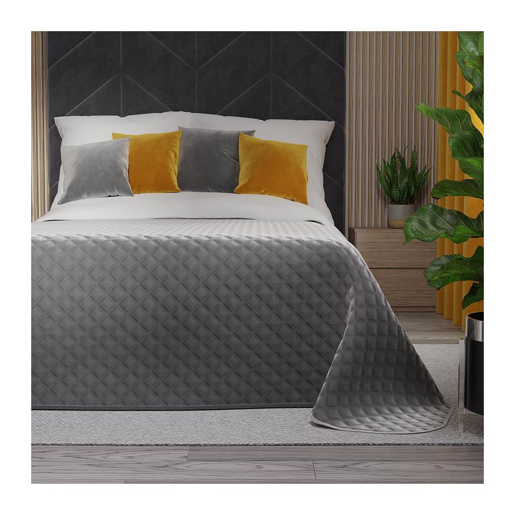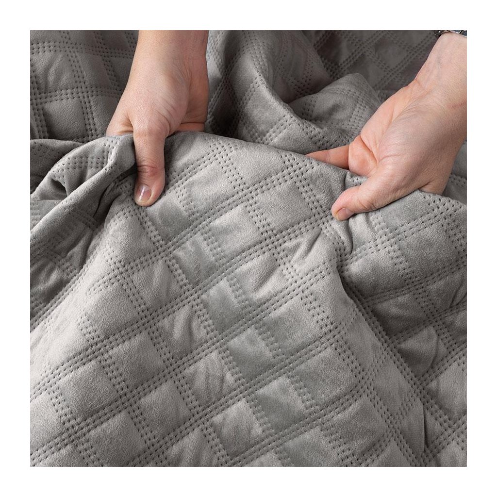 Sivý zamatový prehoz na posteľ VELVI 220x240 cm