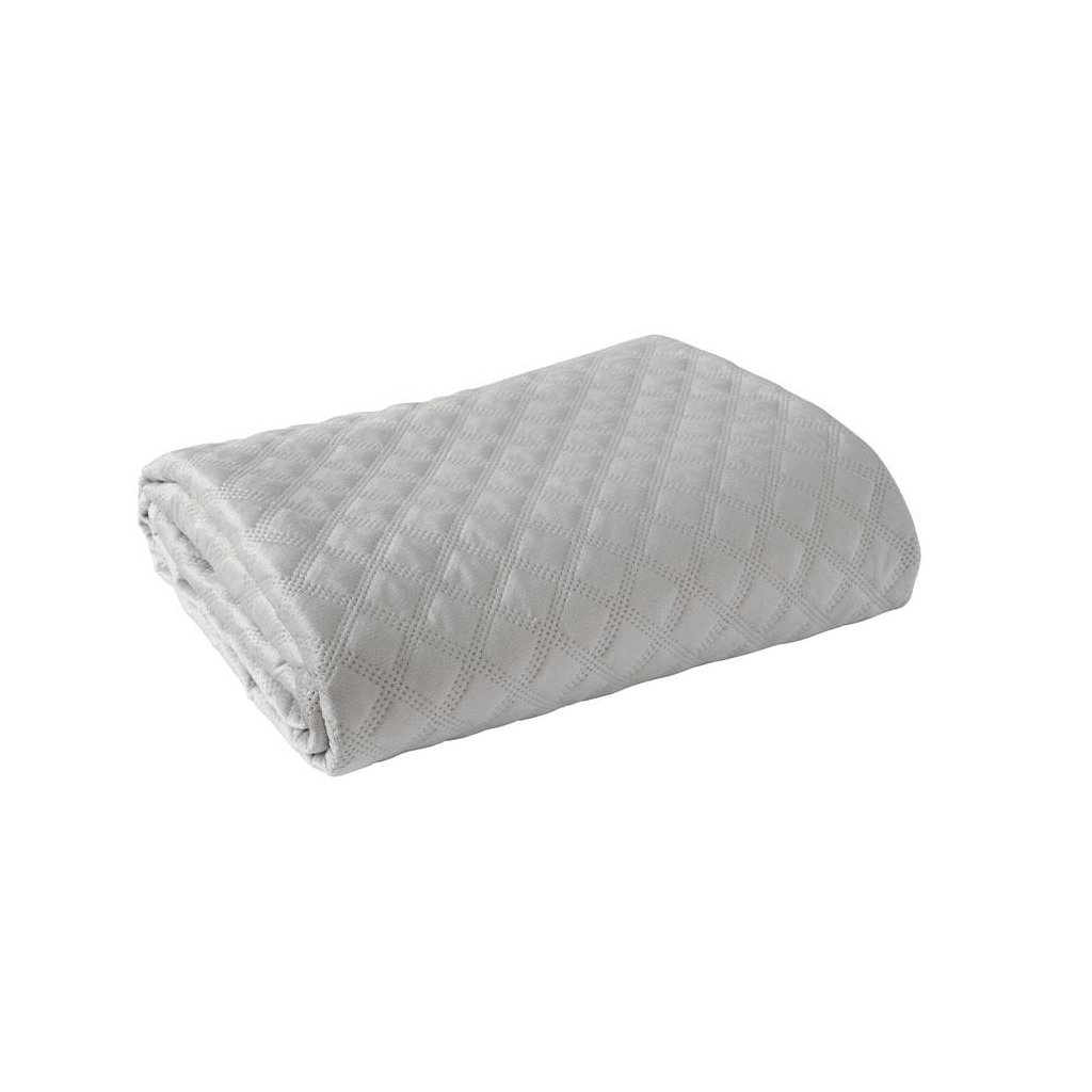 Sivý zamatový prehoz na posteľ VELVI 220x240 cm