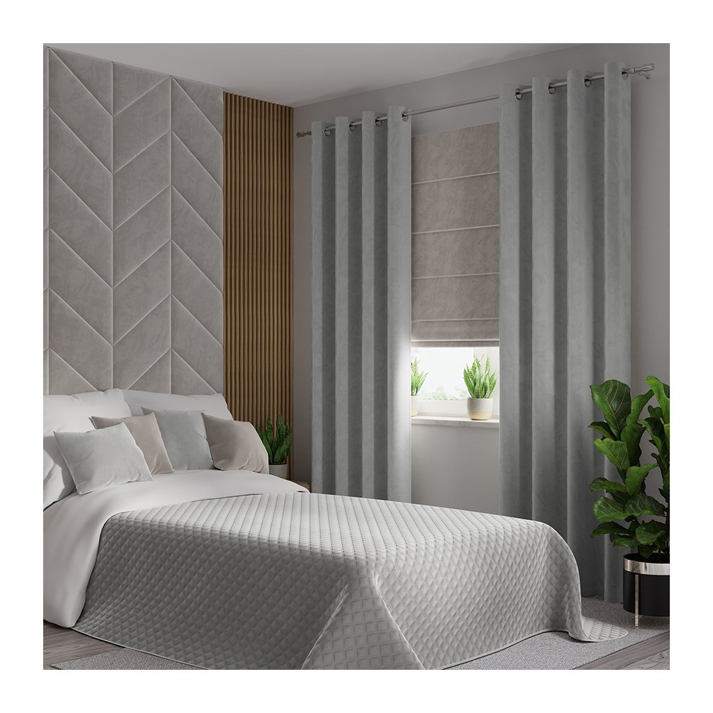 Sivý zatemňovací zamatový záves na krúžkoch VELVI 140x240