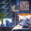 Originálne a štýlové doplnky dopĺňajú aranžmán a vytvárajú jedinečnú atmosféru interiéru. Stojaca lampa MUSA2 v sebe spája modernosť, eleganciu a jednoduchosť tvaru. Kovový podstavec v kombinácii so sklom v odtieni zlata je pokrytý tmavo modrým tienidlom s motívom banánových listov zo zamatovej látky. Táto kombinácia vytvára štýlový efekt, ktorý dokonale ladí s dekorom elegantnej obývačky alebo spálne. Jedinečný dizajn lampy MUSA nielen zdôrazní vašu lásku ku kráse, ale postará sa aj o intímnu atmosféru vo večerných hodinách, pričom vyžaruje romantické, tlmené svetlo.