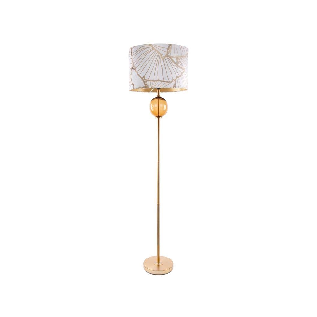 Originálne a štýlové doplnky dotvárajú aranžmán a vytvárajú jedinečnú atmosféru interiéru. Stojaca lampa LUNA3 v sebe spája modernosť, eleganciu a jednoduchosť tvaru. Kovová základňa so sklenenou guľou v odtieni zlata je pokrytá bielym tienidlom s motívom zlatých listov ginka zo zamatovej látky. Táto kombinácia vytvára štýlový efekt, ktorý dokonale skrášli prostredie obývačky alebo spálne. Lampa je kvalitná pevná a bezpečná. Jedinečný dizajn lampy LUNA3 zdôrazní vašu lásku ku kráse a je nepostrádateľným doplnkom, ktorý vďaka svojmu nevšednému dizajnu dodáva interiéru štýl a vytvára intímnu atmosféru.