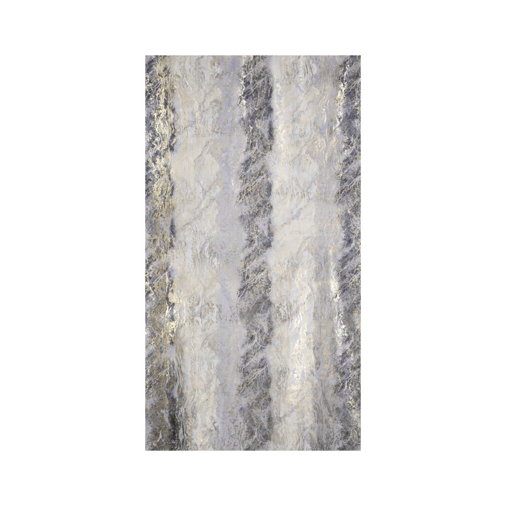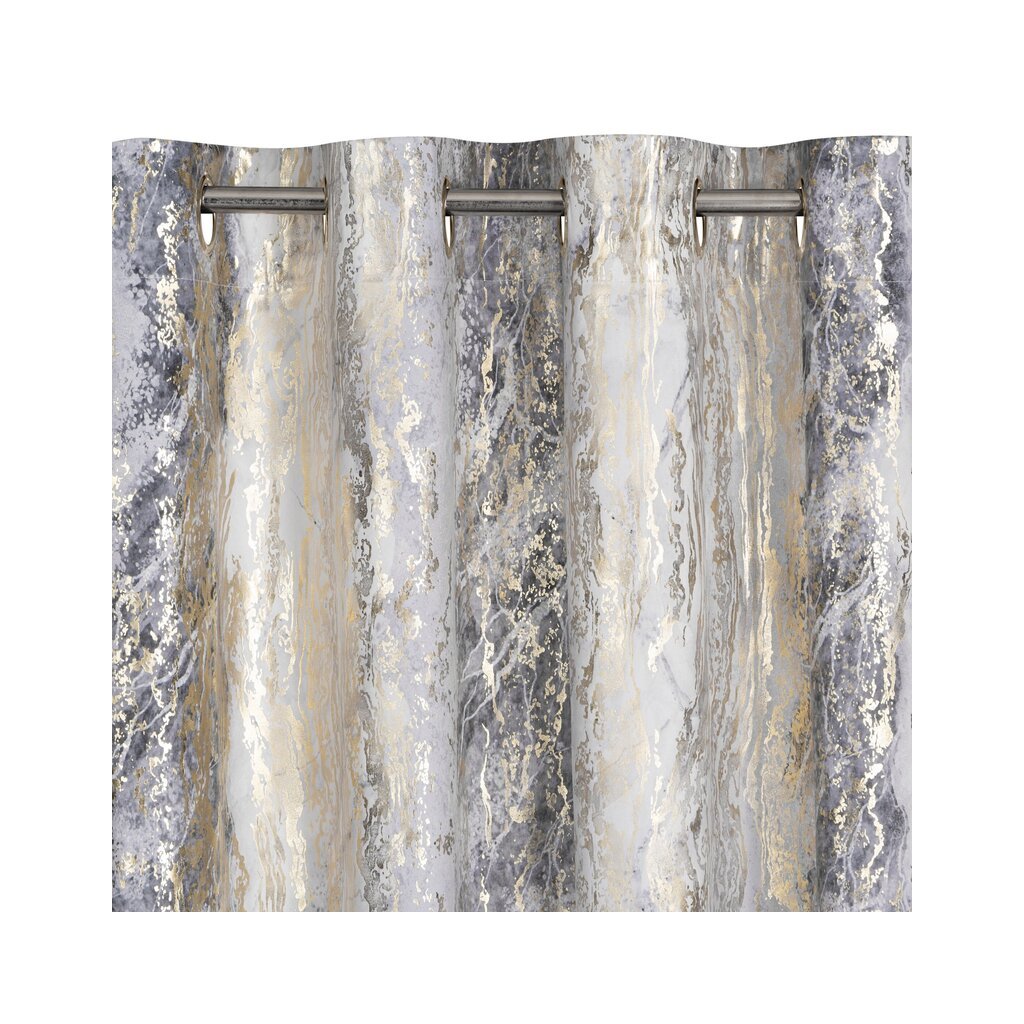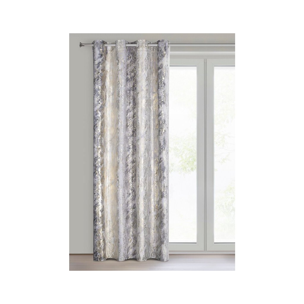 Strieborný zamatový záves so zlatou lesklou potlačou na krúžkoch SOFI 135x250 cm