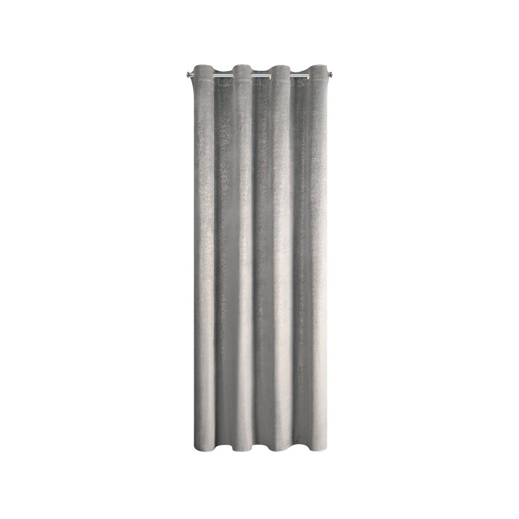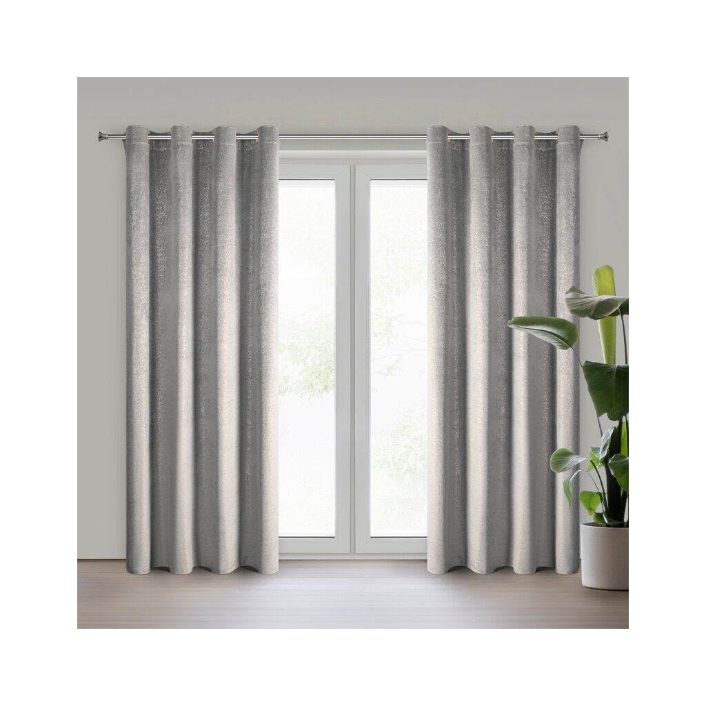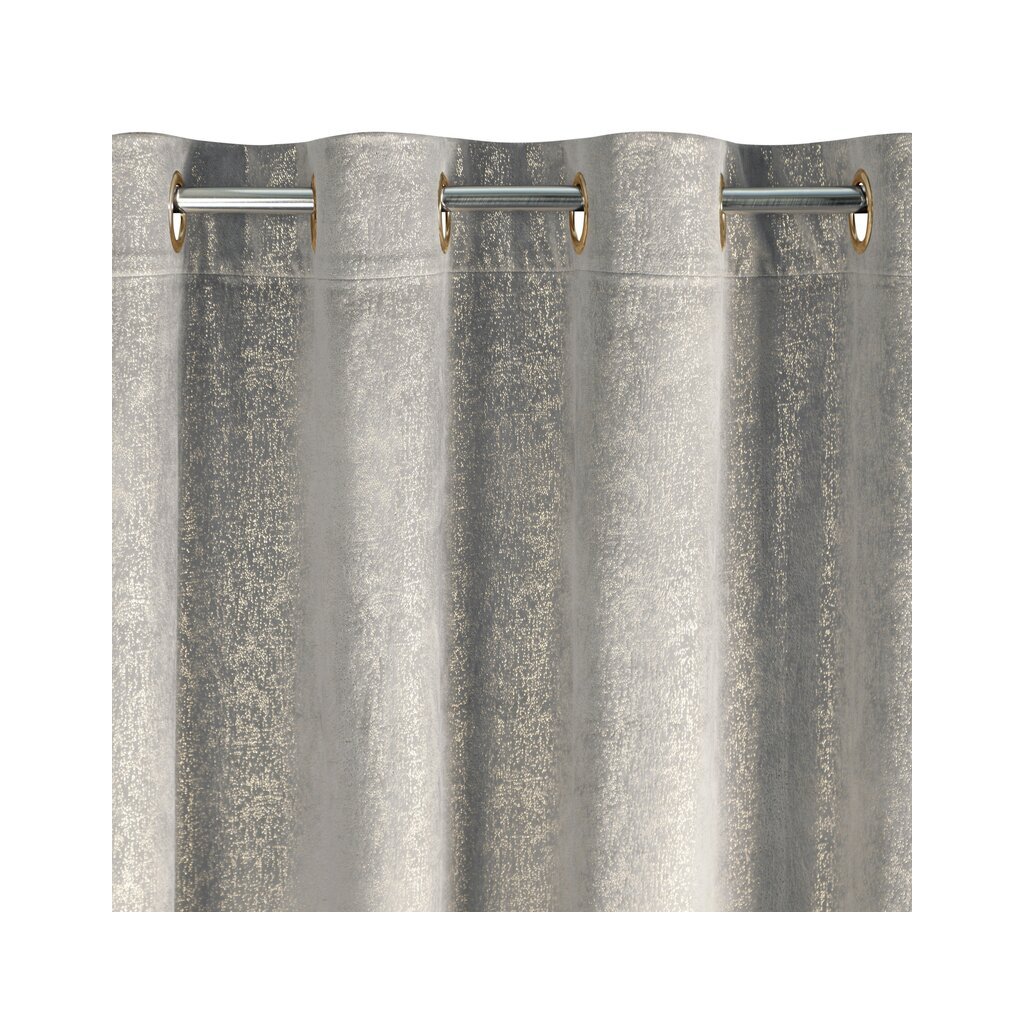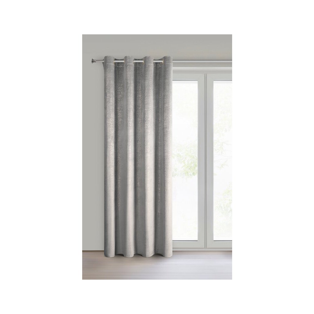Strieborný zamatový záves so zlatou potlačou na krúžkoch BETHY 135x250 cm