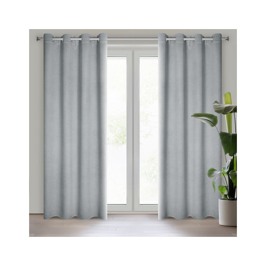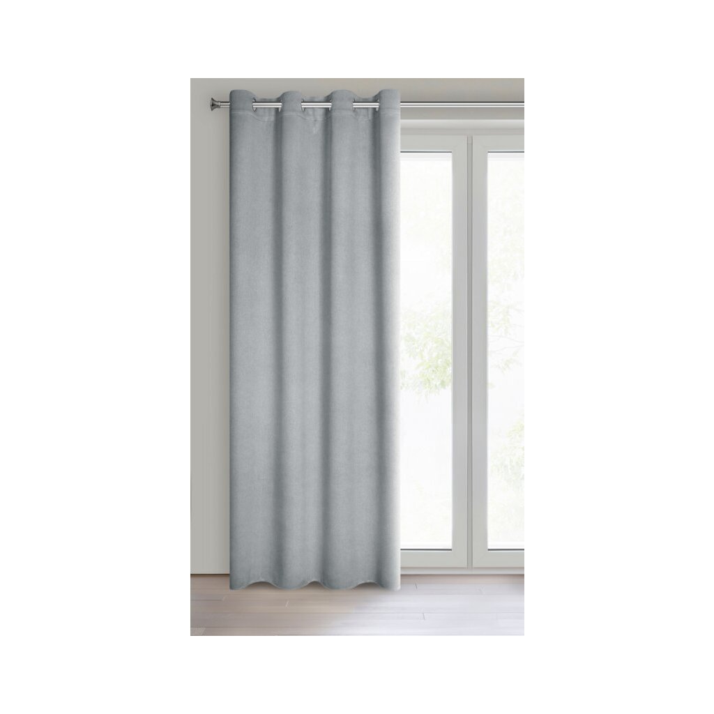 Strieborný zatemňovací záves na krúžkoch CARLO 135x250 cm