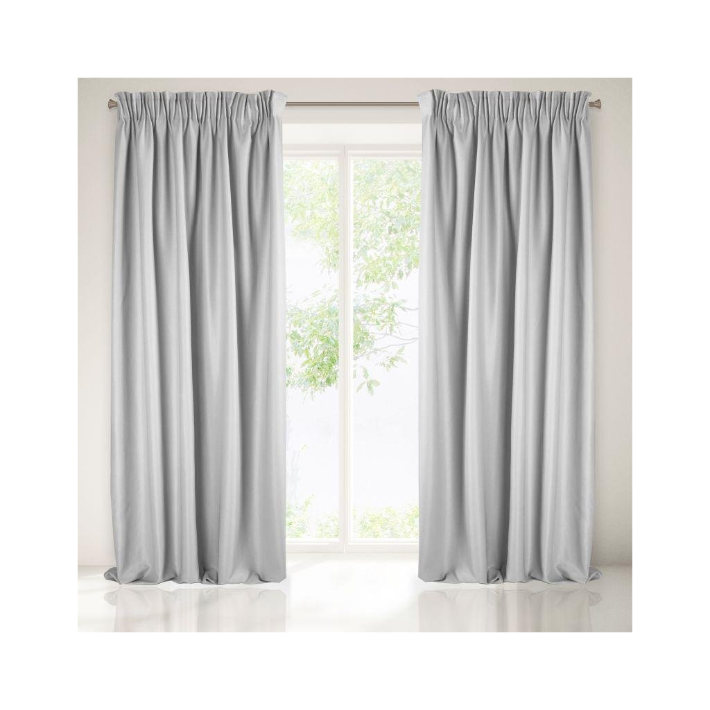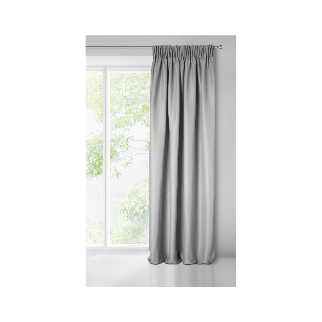 Jednoduchý jednofarebný strieborný záves s jemnou väzbou a mierne lesklým povrchom. Šírka: 140 cm, dĺžka: 270 cm. Zloženie: 100% polyester. Ľahké žehlenie. Praktické zavesenie na riasiacej páske.