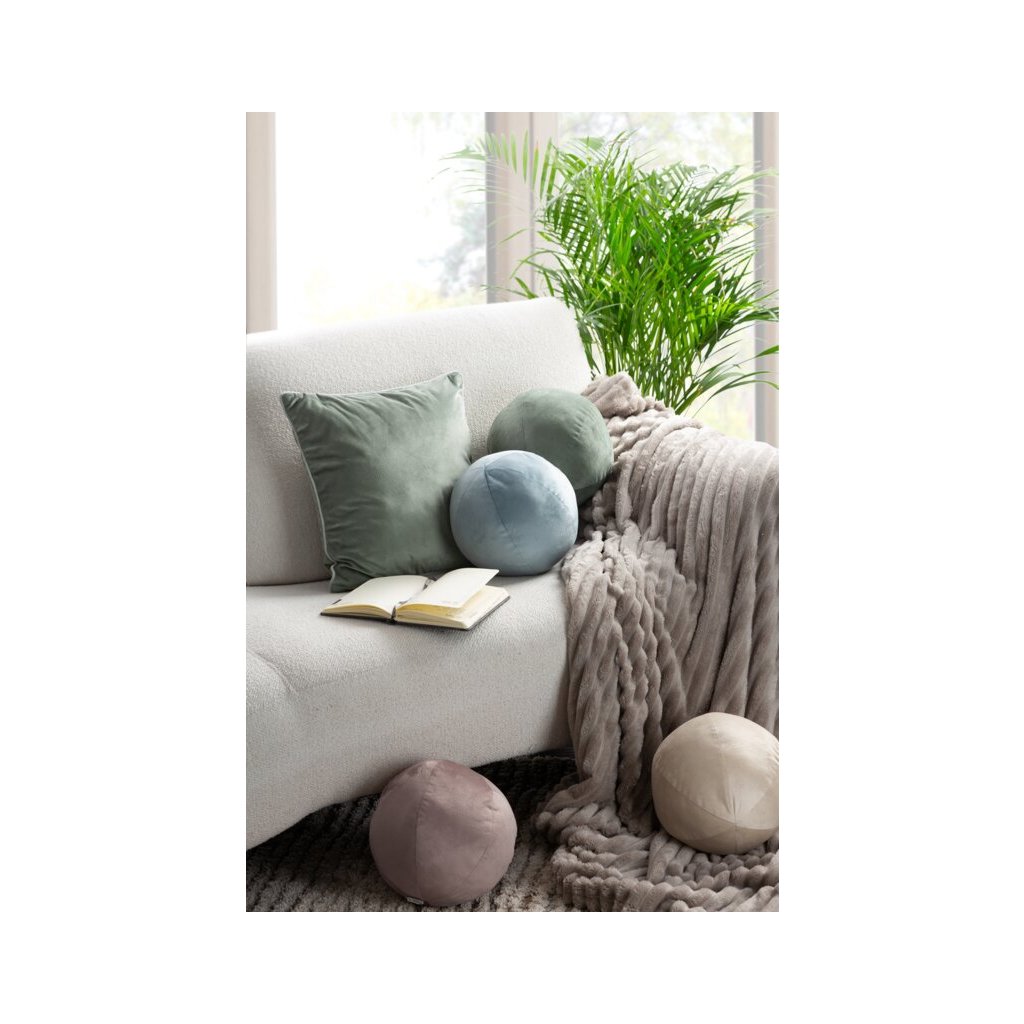 Svetlobéžový dekoratívny zamatový vankúš v tvare gule GAJA4 priemer 24 cm