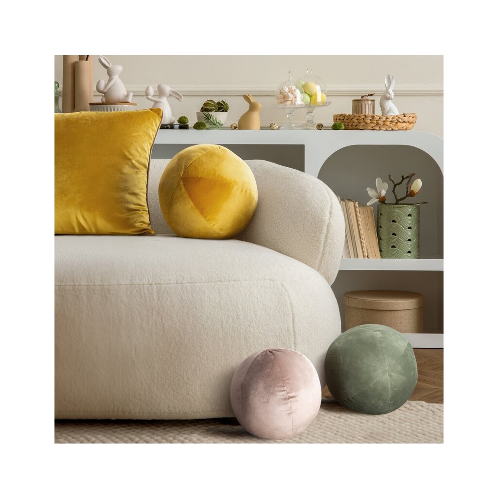 Elegantný jednofarebný dekoračný vankúš v tvare gule je štýlový a originálny doplnok, ktorý dodá každému interiéru jedinečný charakter. Vyrobený je z mäkkej zamatovej látky, ktorá je príjemná na dotyk a zaujme svojím jemným leskom. Už na prvý pohľad pôsobí útulne a elegantne.