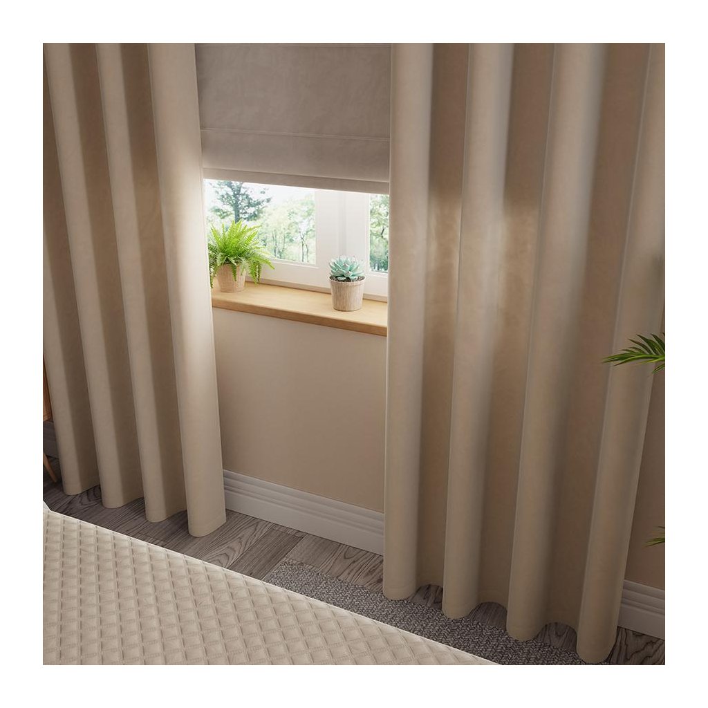 Svetlobéžový zamatový záves na krúžkoch VELVI 140x240 cm