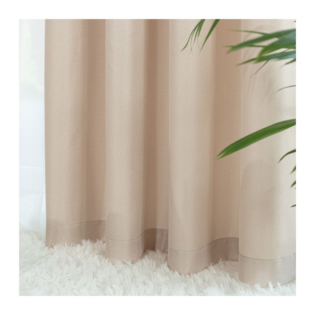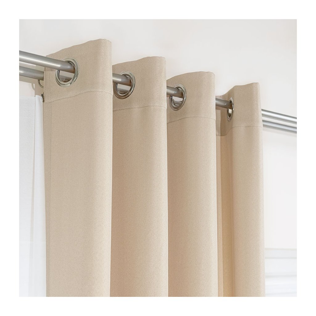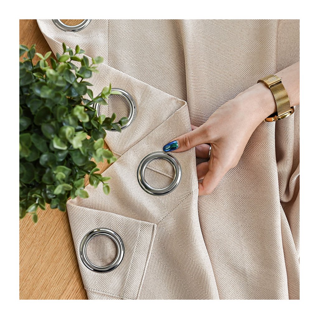 Svetlobéžový záves so vzorom rybia kosť na krúžkoch JODELKA 140x250 cm