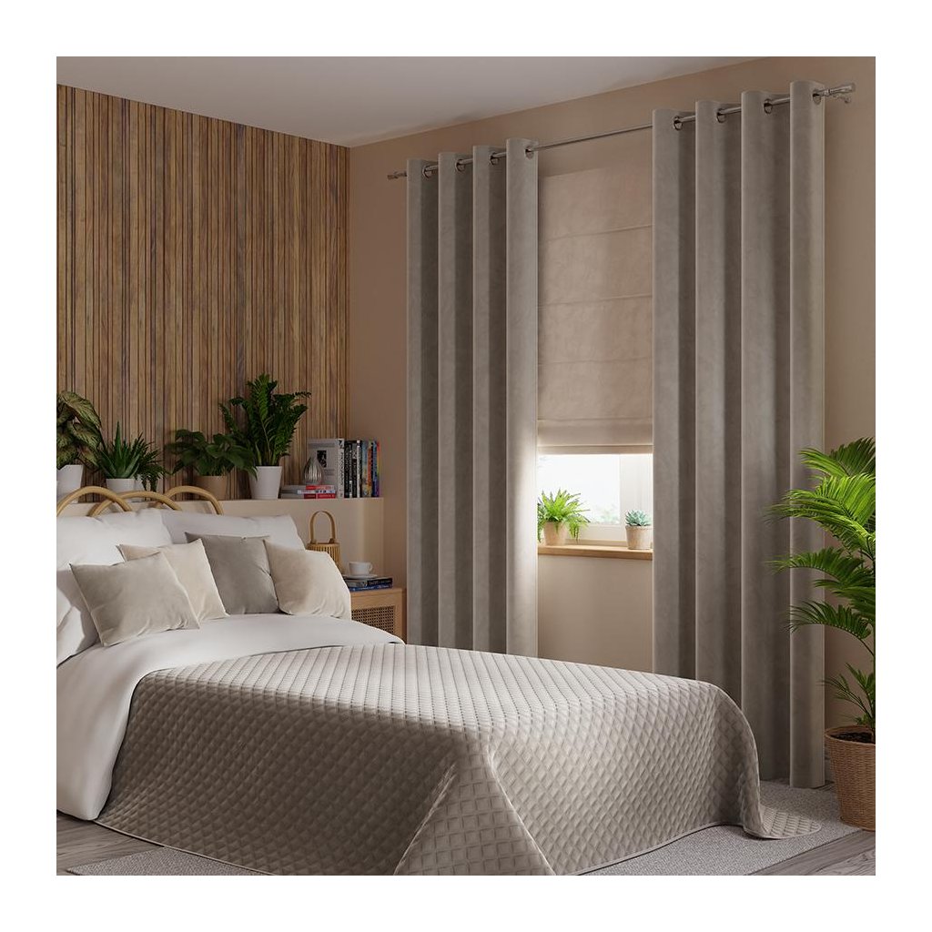 Svetlohnedý zamatový záves na krúžkoch VELVI 140x240 cm