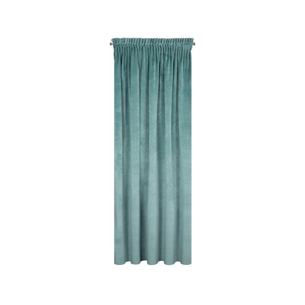 Zamatový jednofarebný svetlomodrý záves RIA. Masívna látka poskytuje vysoký stupeň vnútorného zatemnenia. Šírka: 140 cm, dĺžka: 270 cm. Zloženie: 100% polyester. Gramáž 290 g/m2. Praktické zavesenie na riasiacej páske.