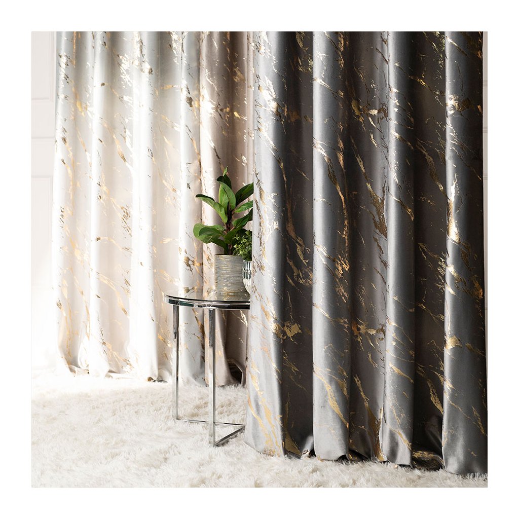 Svetlosivý zamatový záves so zlatou potlačou na páske MARMA 140x250 cm