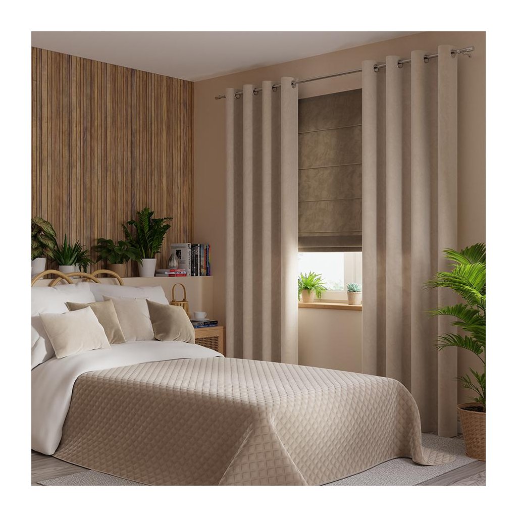 Tmavokrémová farba je neutrálna a hrejivá – nádherne zútulní priestor a ľahko sa kombinuje s prírodným drevom, béžovými a sivými stenami, ale aj s čiernymi či mosadznými detailmi. Ak máte radi vrstvenie textílií, skombinujte VELVI s ľahkou bielou záclonou – cez deň svetlo, večer súkromie a okno ako z magazínu.
