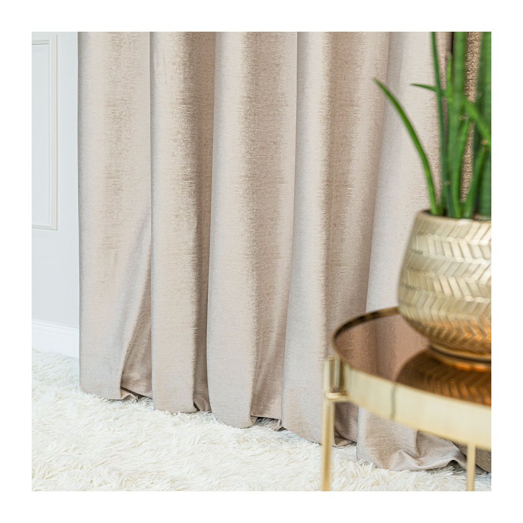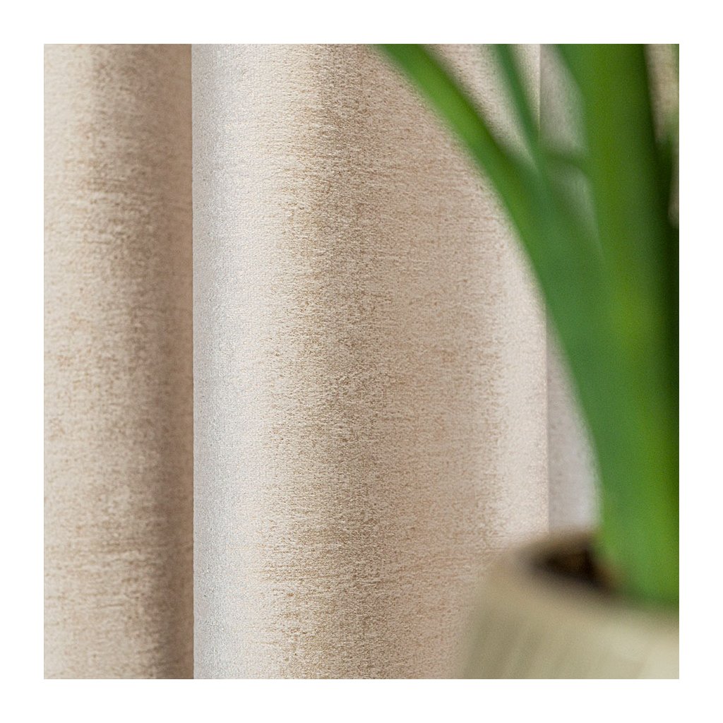 Elegantný zamatový záves s jemnou zlatou potlačou dodá interiéru luxusný, teplý charakter. Husto tkaný zamat krásne splýva a pri dopade svetla vytvára noblesný, jemne sa meniací lesk – dokonale zvýrazní okno v modernom aj klasickom štýle.