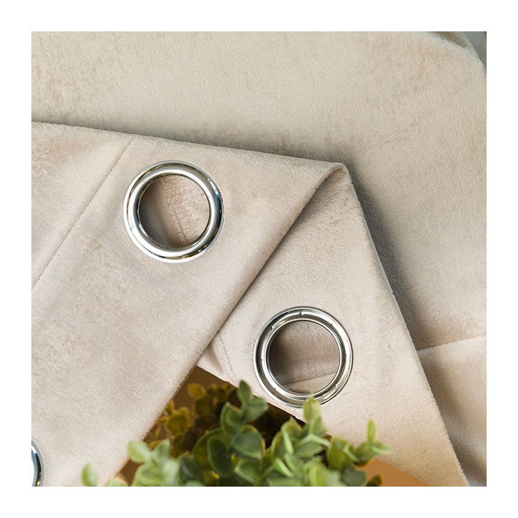 Tmavokrémový zamatový záves so zlatou potlačou na krúžkoch ELEONORA 140x250 cm