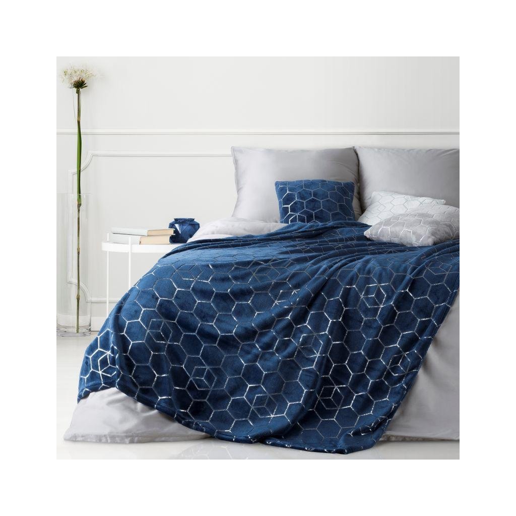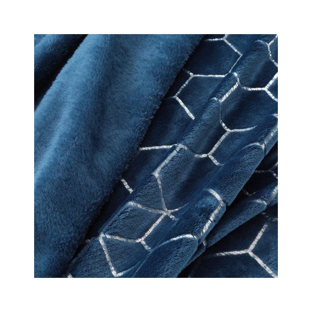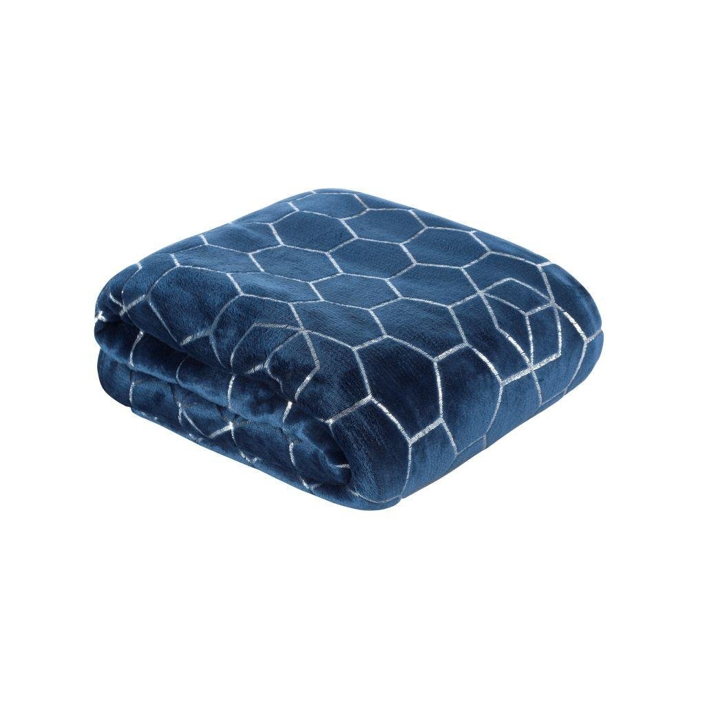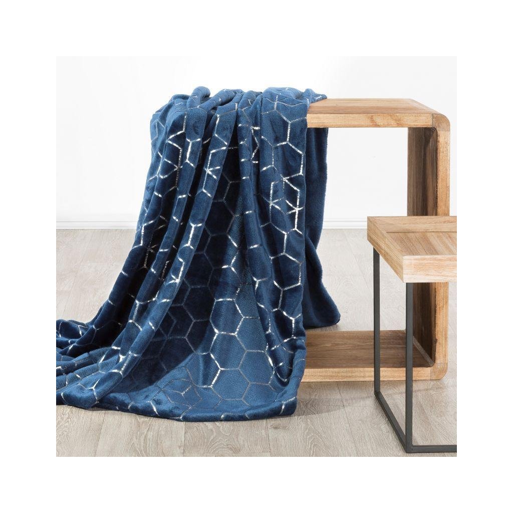Veľmi príjemná na dotyk a ľahká tmavomodrá deka VANESA z jemného mikrovlákna je ozdobená lesklou potlačou v tvare šesťuholníkových vzorov, odolných voči praniu.