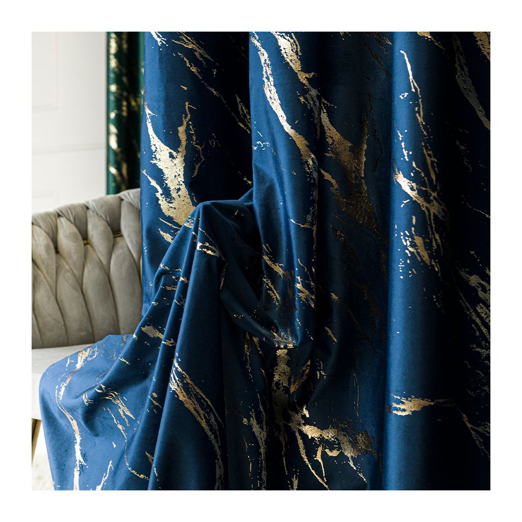 ✅ MARMA – luxusný zamatový záves s metalickou mramorovou potlačou pre elegantný akcent.