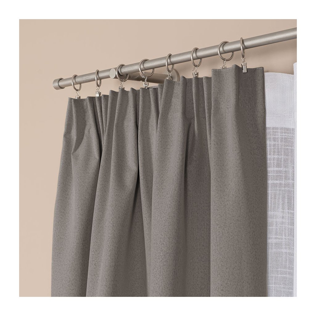 Záves je ušitý na praktickej riasiacej páske, ktorá umožňuje jednoduché uchytenie na žabky, háčiky alebo posuvné háčiky do koľajničiek. Riasiaca páska zároveň vytvára pravidelné a elegantné vlnenie látky, vďaka čomu záves pôsobí upravene a luxusne. Je vhodný do spálne, obývačky či detskej izby, kde oceníte plné zatemnenie počas dňa aj večer.
