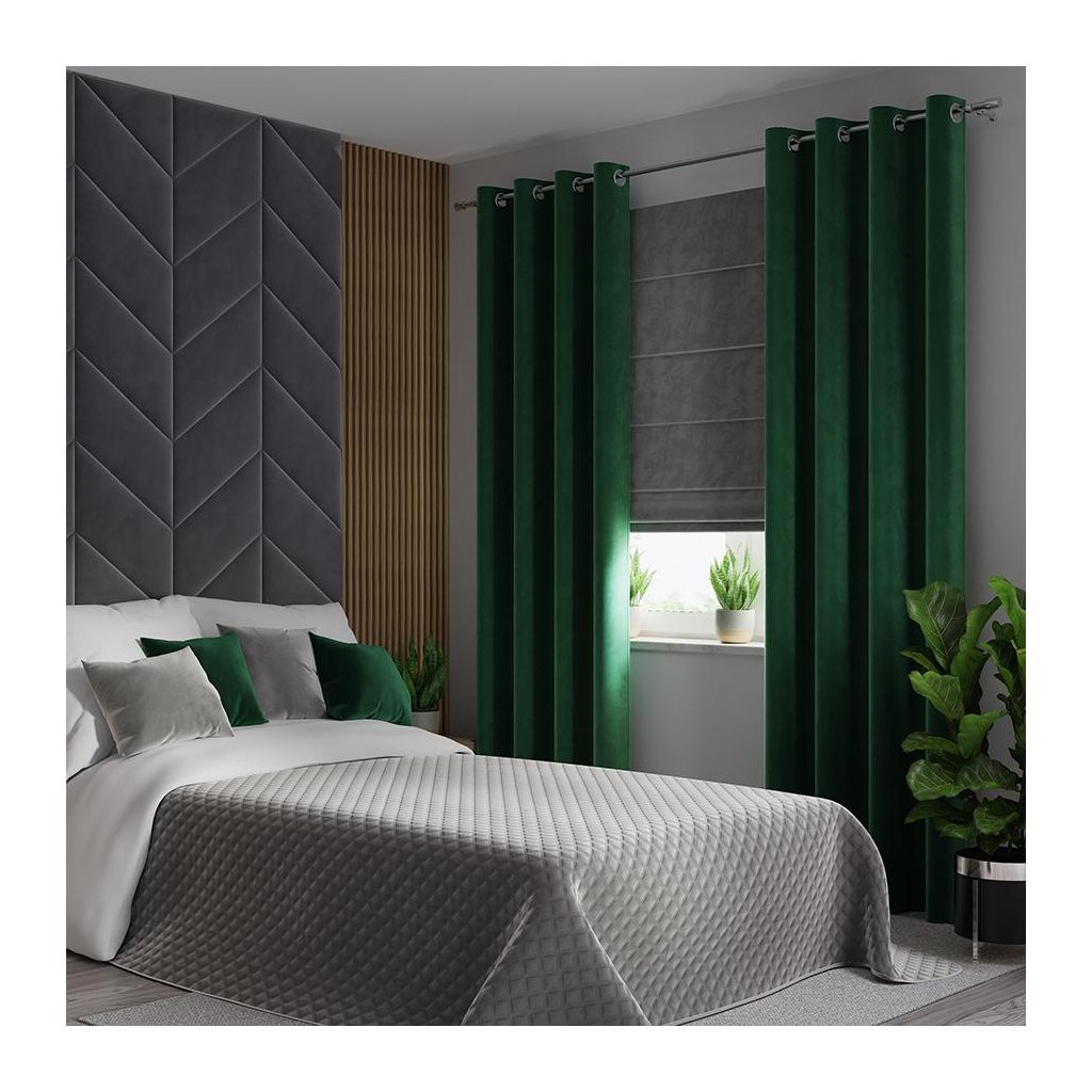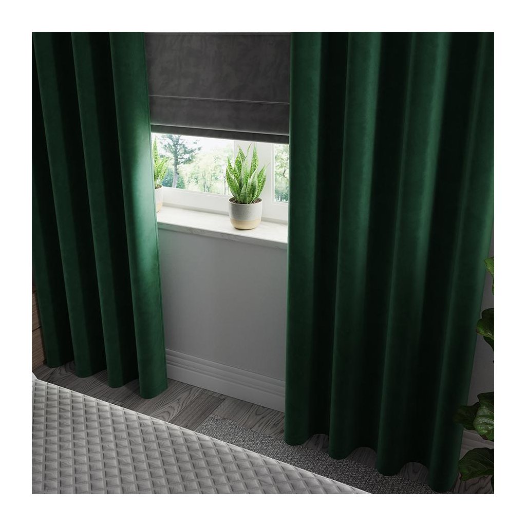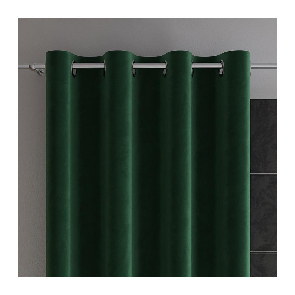 Tmavozelený zamatový záves na krúžkoch VELVI 140x240 cm