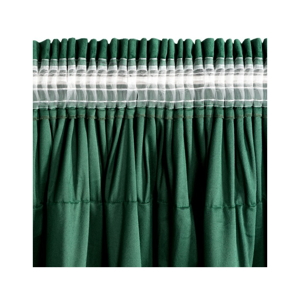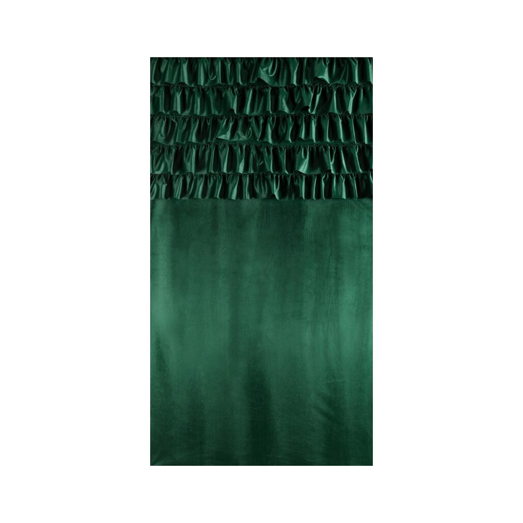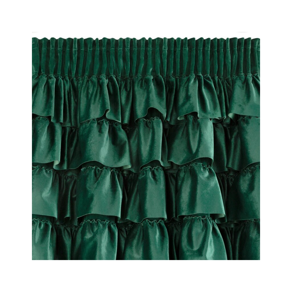 Tmavozelený zamatový záves s volánmi na páske AURA 140x270 cm