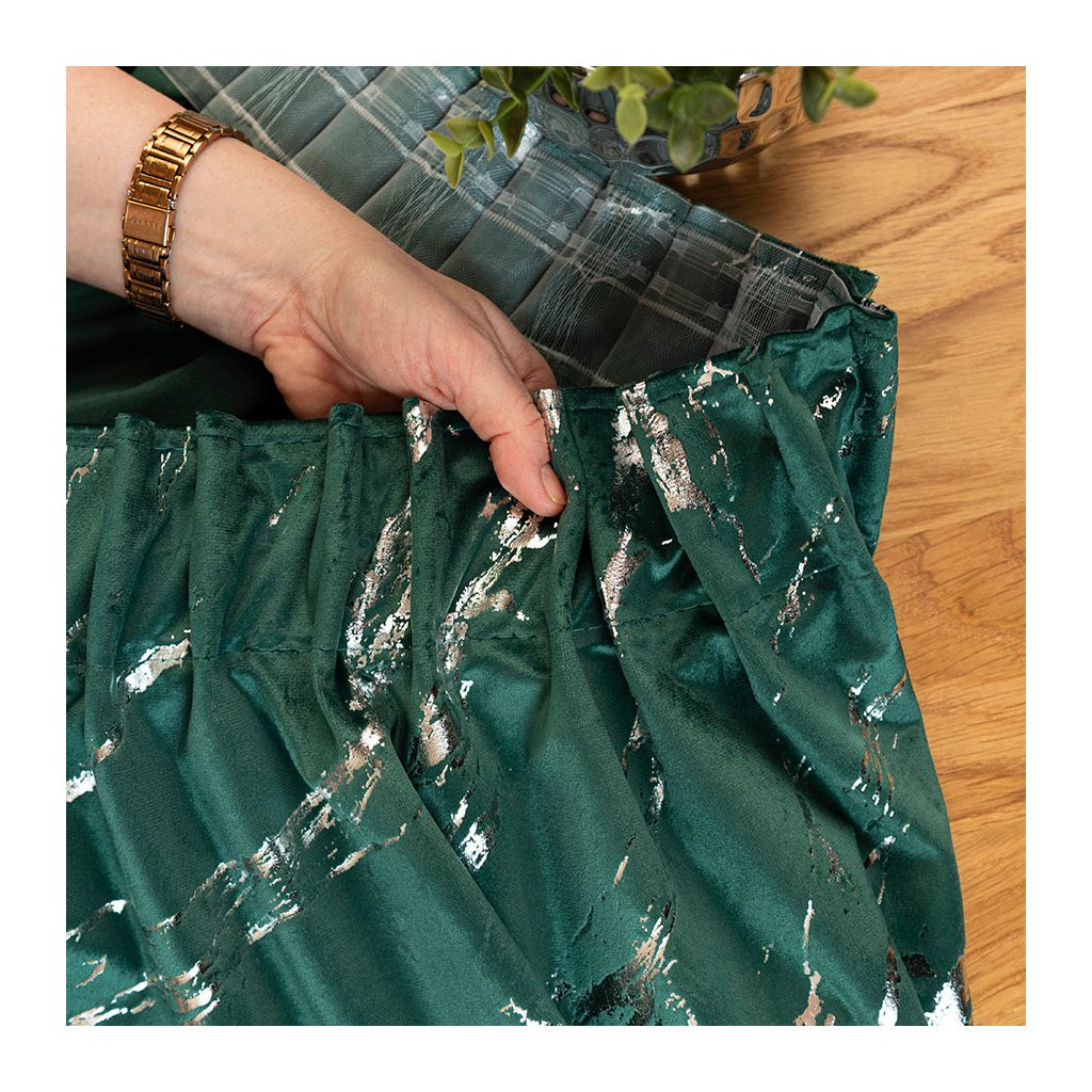 Tmavozelený zamatový záves so striebornou potlačou na páske MARMA 140x250 cm