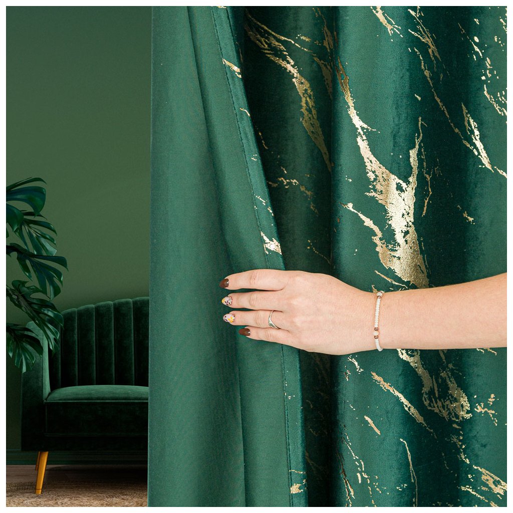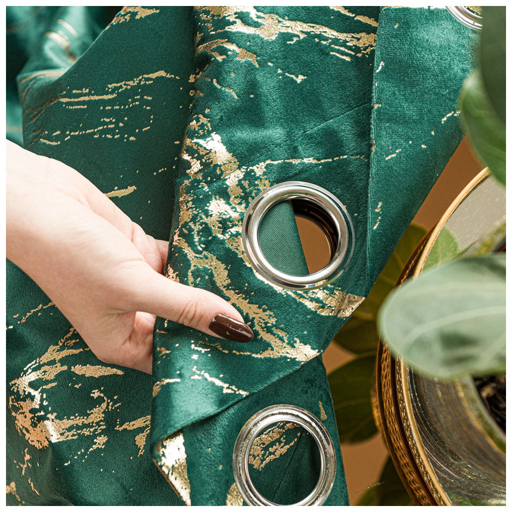 Tmavozelený zamatový záves so zlatou potlačou na krúžkoch MARMA 140x250 cm