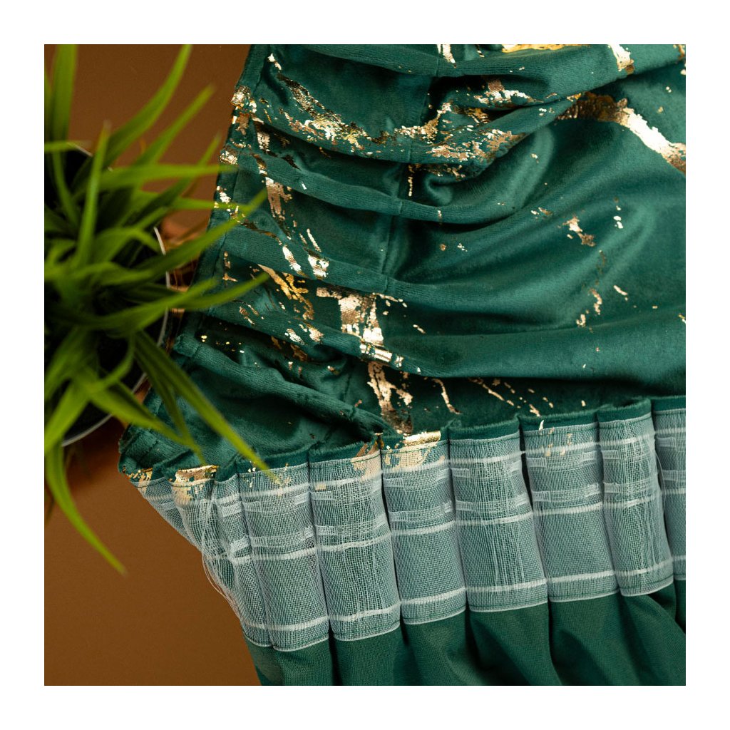 Tmavozelený zamatový záves so zlatou potlačou na páske MARMA 140x250 cm