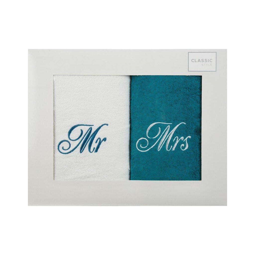 Tyrkysovobiela darčeková sada uterákov MR+MRS