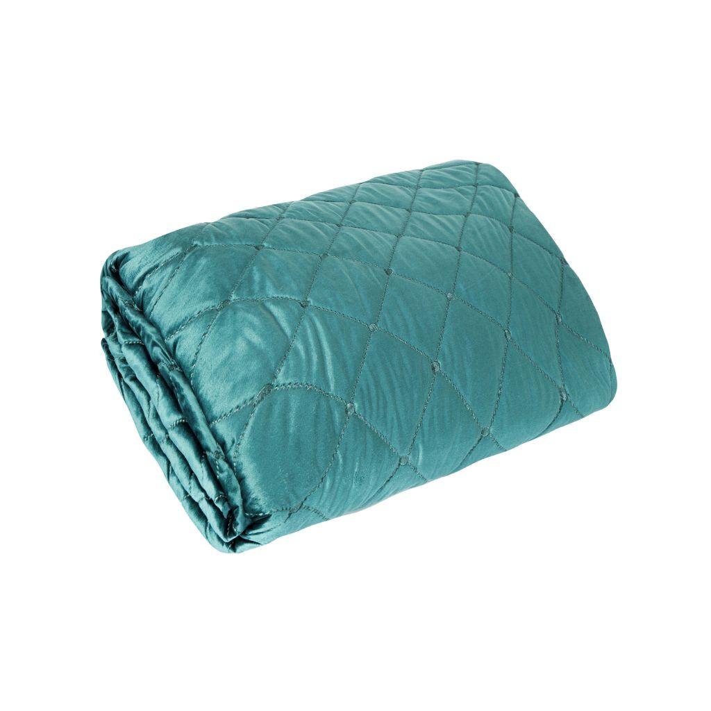 Zamatový tyrkysový prehoz na posteľ so vzorom vyšívaných diamantov ktoré vytvárajú 3D efekt. 170x210 cm.