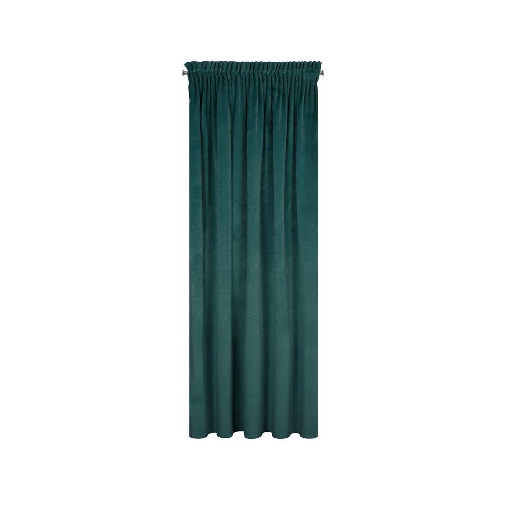 Zamatový jednofarebný tyrkysový záves RIA. Masívna látka poskytuje vysoký stupeň vnútorného zatemnenia. Šírka: 140 cm, dĺžka: 270 cm. Zloženie: 100% polyester. Gramáž 290 g/m2. Praktické zavesenie na riasiacej páske.