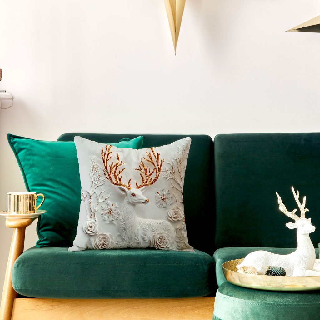 Vianočná dekoračná obliečka na vankúš s motívom 3D jeleňa VELVET 40x40 cm
