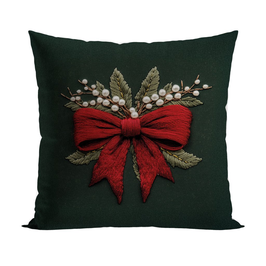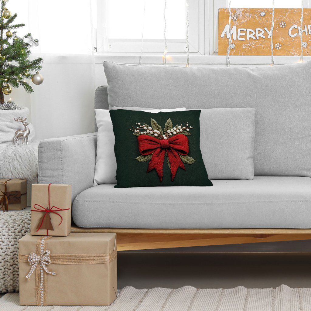 Vianočná dekoračná obliečka na vankúš s motívom vyšívanej mašle VELVET 40x40 cm