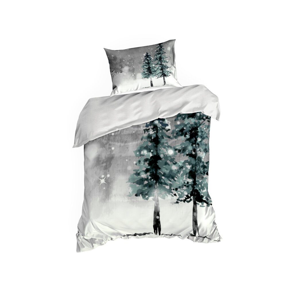 Vianočné sátenové posteľné obliečky FOREST 140x200 cm, 1x70x80 cm