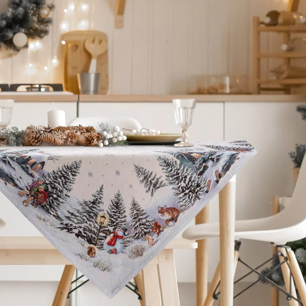 Zvolený rozmer ľahko prispôsobíte svojmu stolu – obrus pôsobí najkrajšie s presahom približne 20–30 cm z každej strany. Stačí pridať sviečky a pár zimných doplnkov a vytvoríte premyslené sviatočné prestieranie, ktoré zaujme na prvý pohľad.