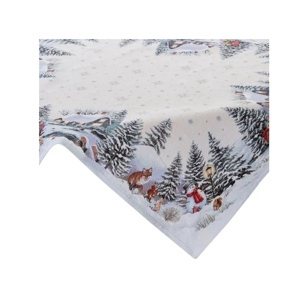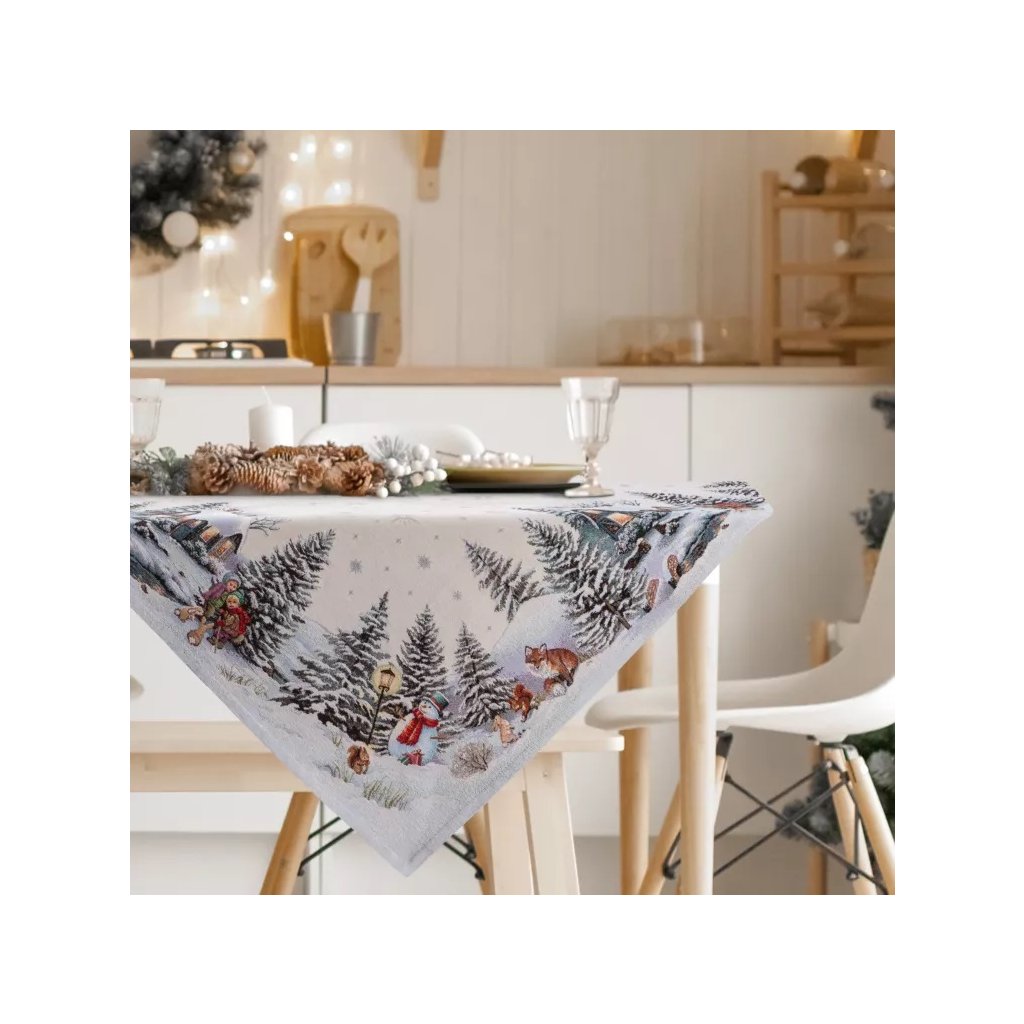 Vianočný obrus s elegantným sviatočným motívom premení váš stôl na útulné a slávnostné miesto pre spoločné chvíle. Jemne zdobený dezén pôsobí nadčasovo a upravene, na stole pekne drží tvar a vytvára harmonický základ pre prestieranie – od adventných raňajok až po Štedrú večeru.