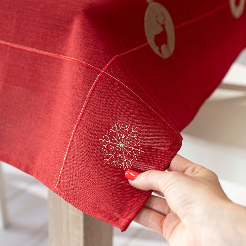 Zvolený rozmer ľahko prispôsobíte svojmu stolu – obrus pôsobí najkrajšie s presahom približne 20–30 cm z každej strany. Stačí pridať sviečky a pár zimných doplnkov a vytvoríte premyslené sviatočné prestieranie, ktoré zaujme na prvý pohľad.