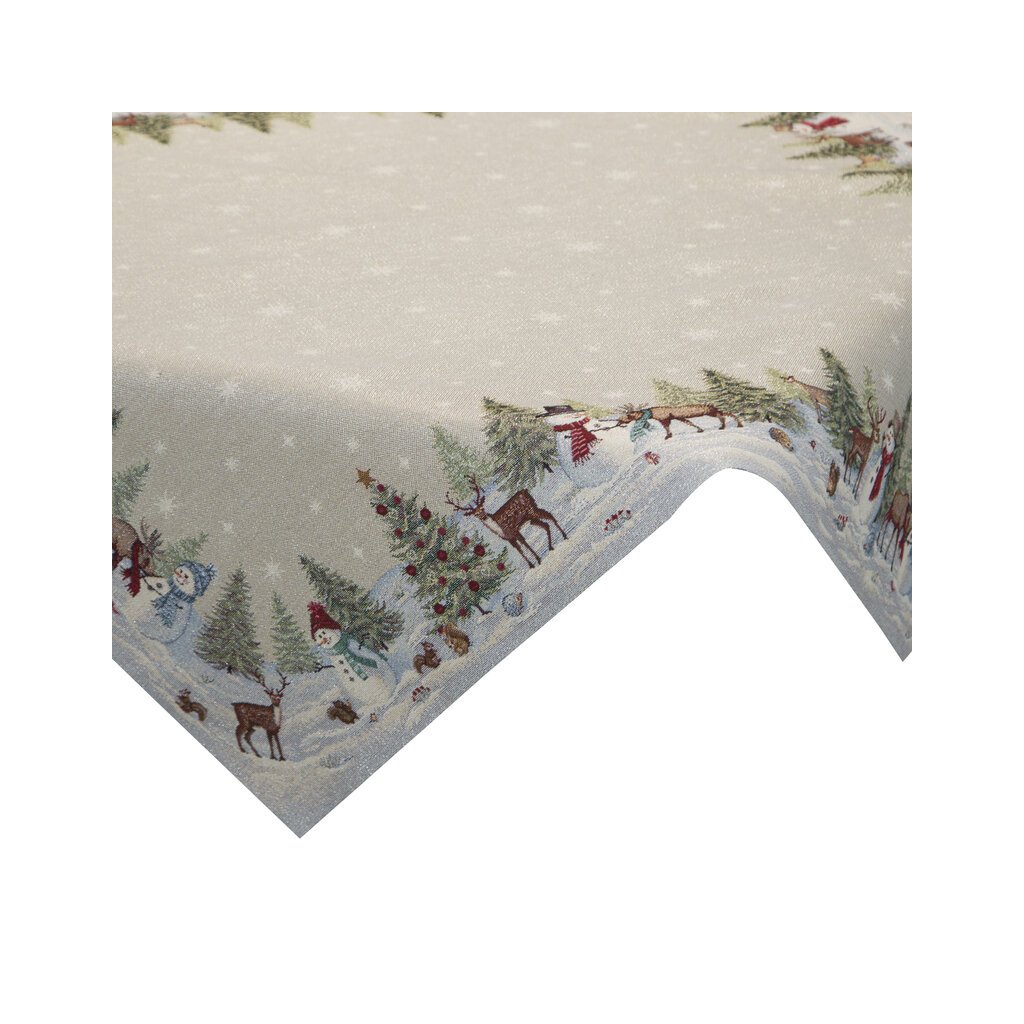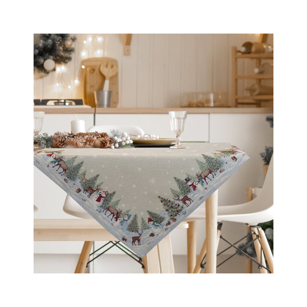 Vianočný obrus s elegantným sviatočným motívom premení váš stôl na útulné a slávnostné miesto pre spoločné chvíle. Jemne zdobený dezén pôsobí nadčasovo a upravene, na stole pekne drží tvar a vytvára harmonický základ pre prestieranie – od adventných raňajok až po Štedrú večeru.