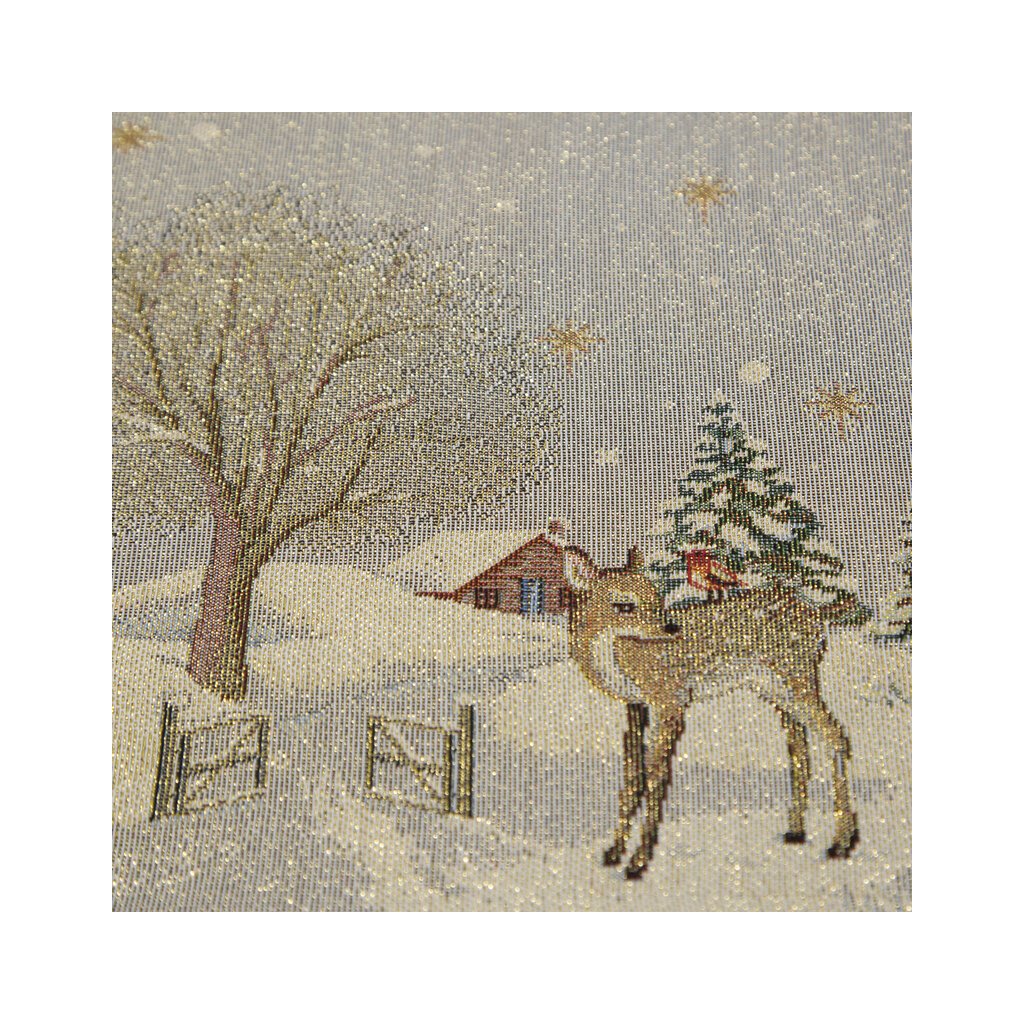 Vianočný obrus s elegantným sviatočným motívom premení váš stôl na útulné a slávnostné miesto pre spoločné chvíle. Jemne zdobený dezén pôsobí nadčasovo a upravene, na stole pekne drží tvar a vytvára harmonický základ pre prestieranie – od adventných raňajok až po Štedrú večeru.